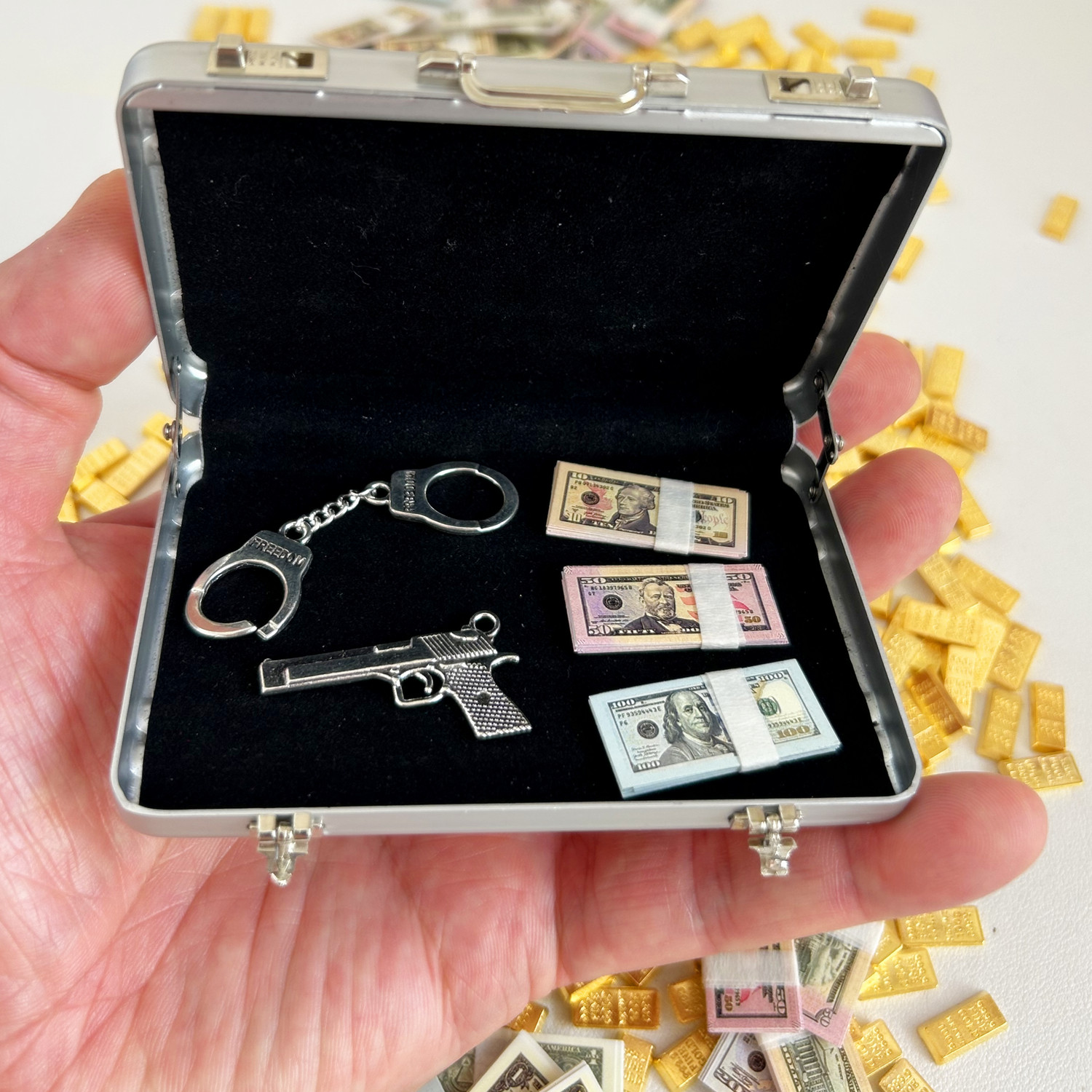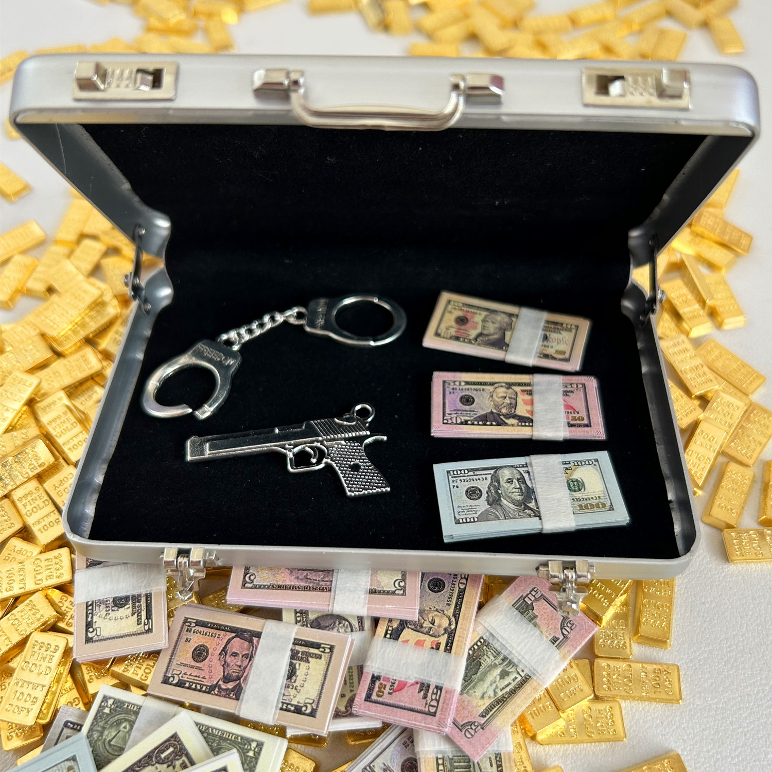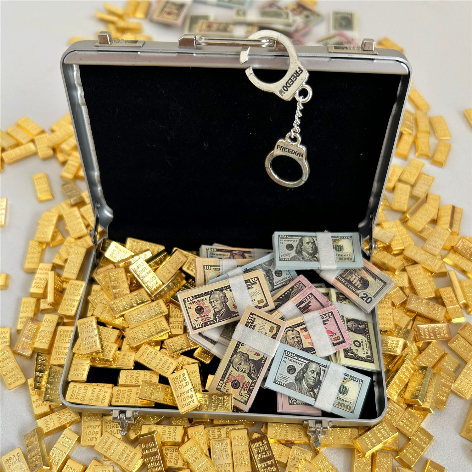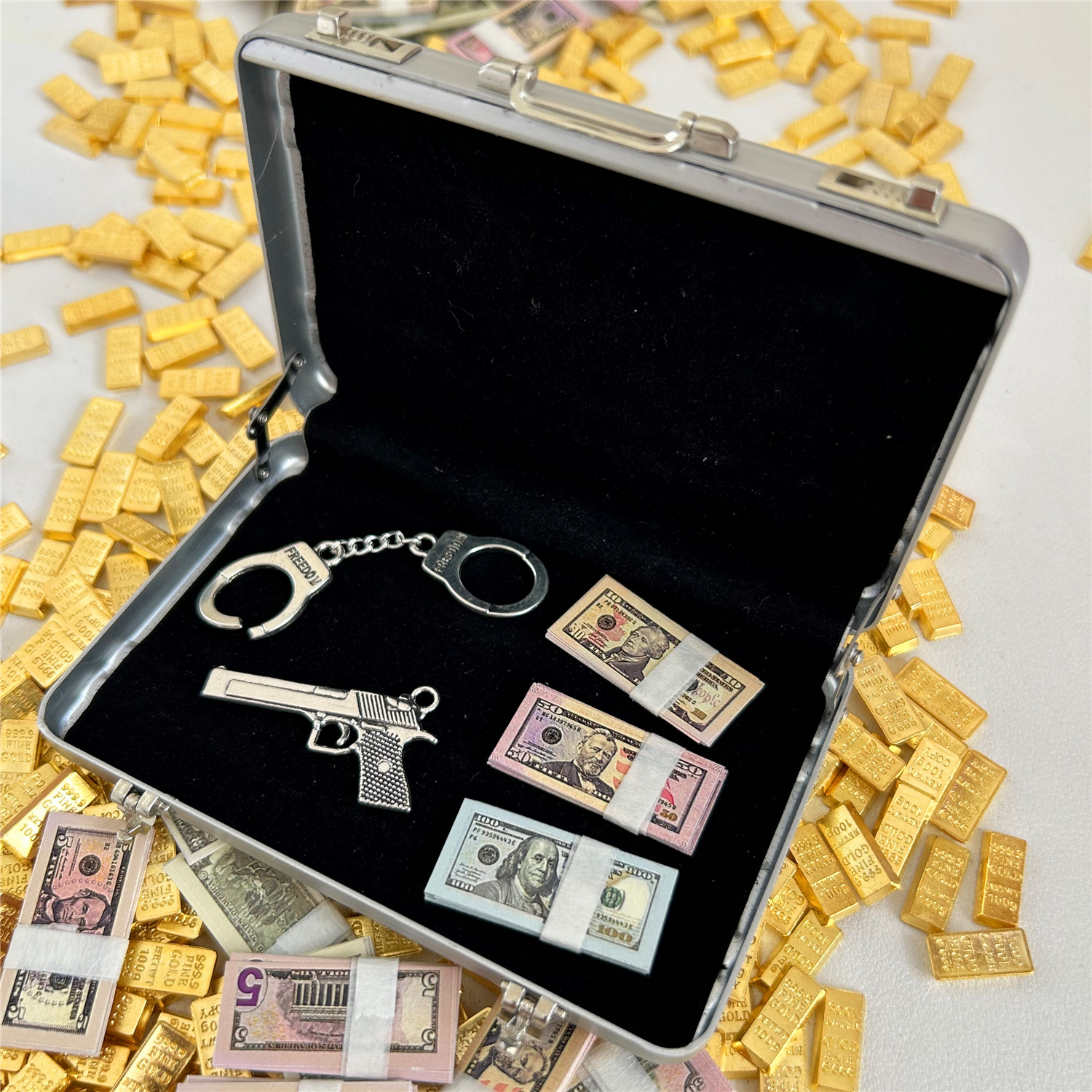 迷你仿真铝合金手提箱美金钞票金条武器模型微缩娃娃屋小配件玩具