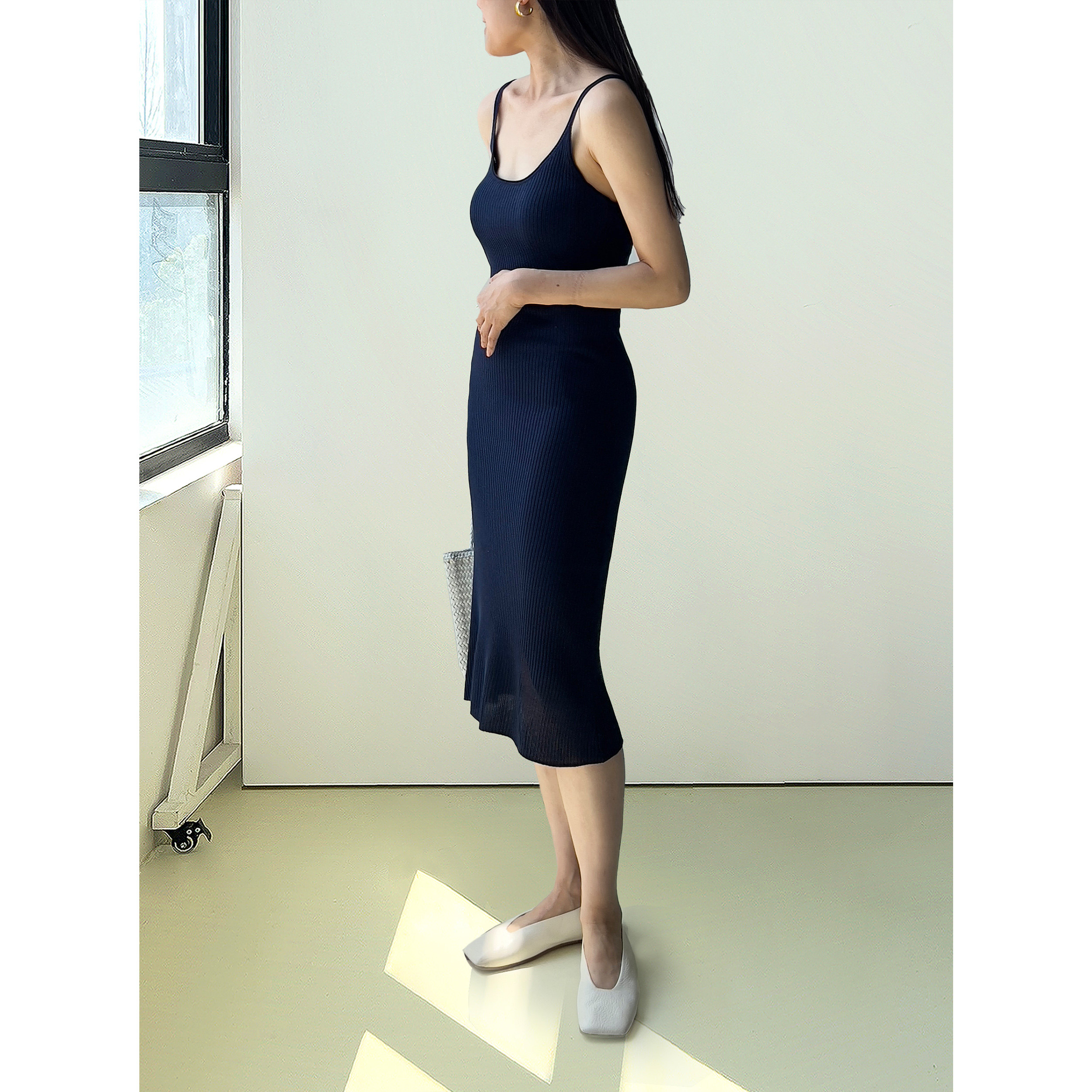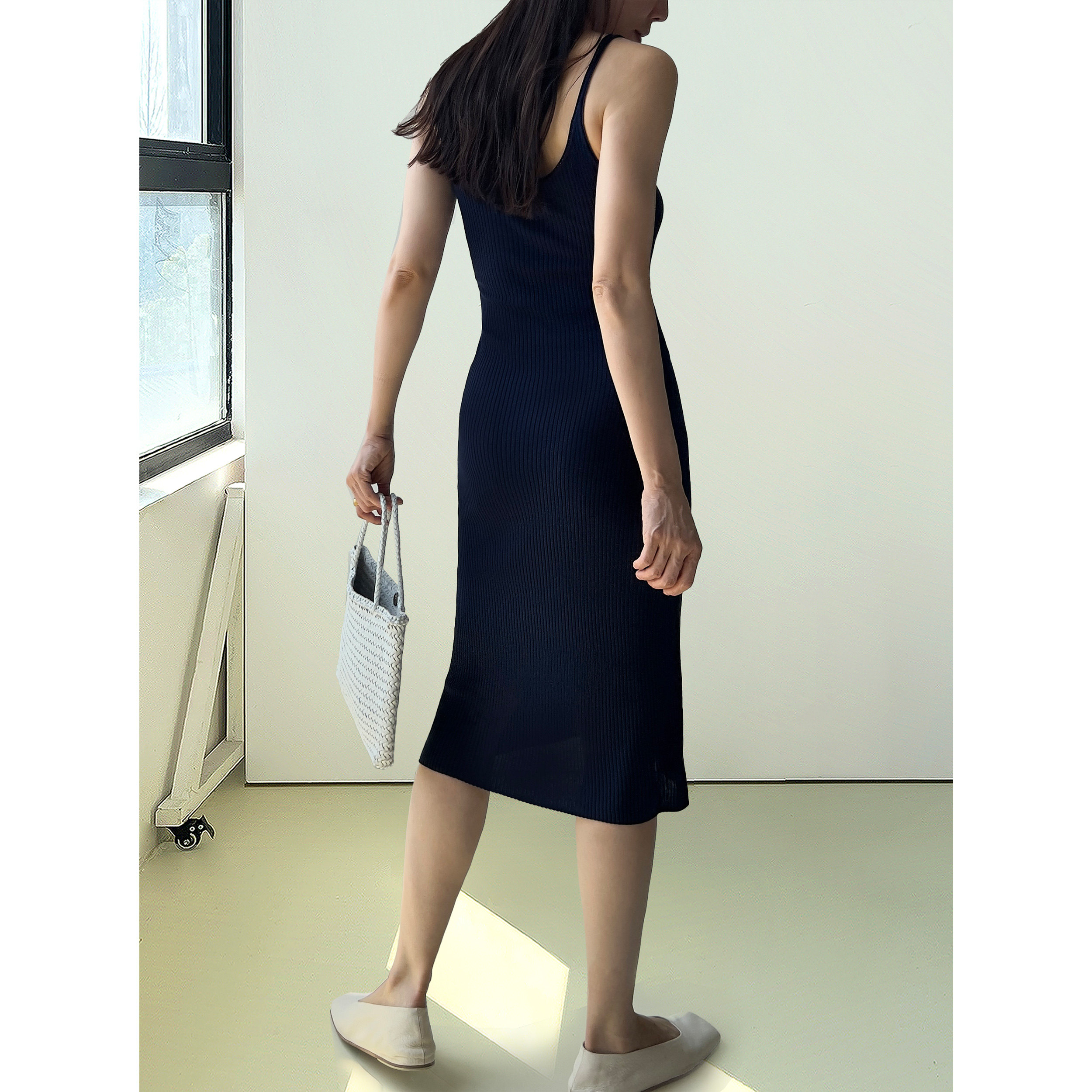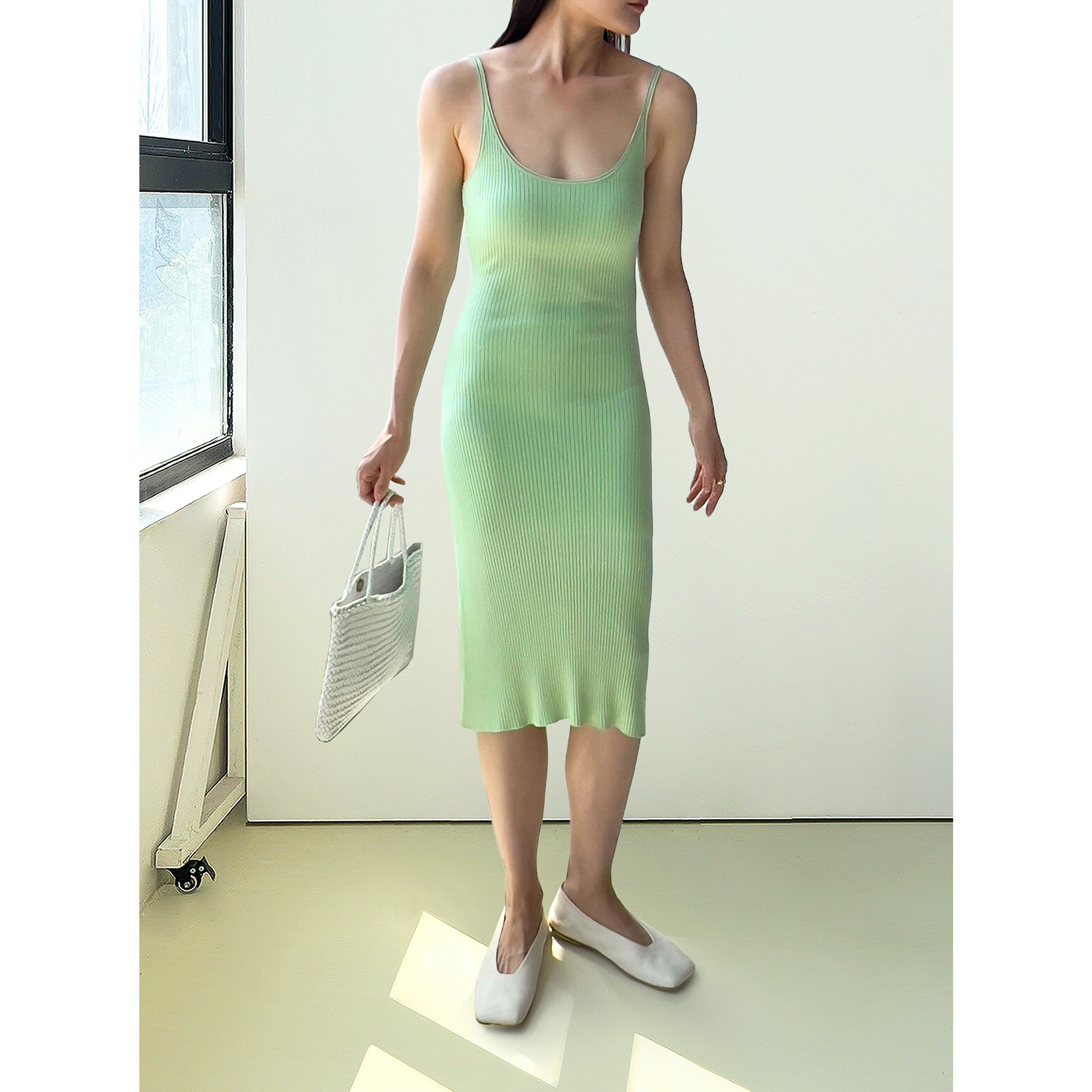 (2色)Plain Sight 薄荷绿,藏蓝真丝吊带针织背心连衣裙