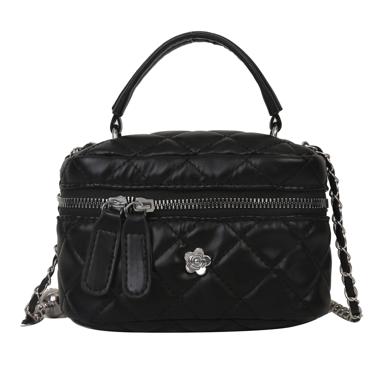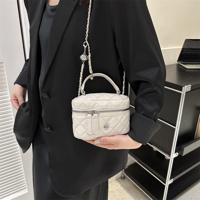 银色手提包包女2025新款潮时尚菱格链条包百搭ins斜挎包小水桶包