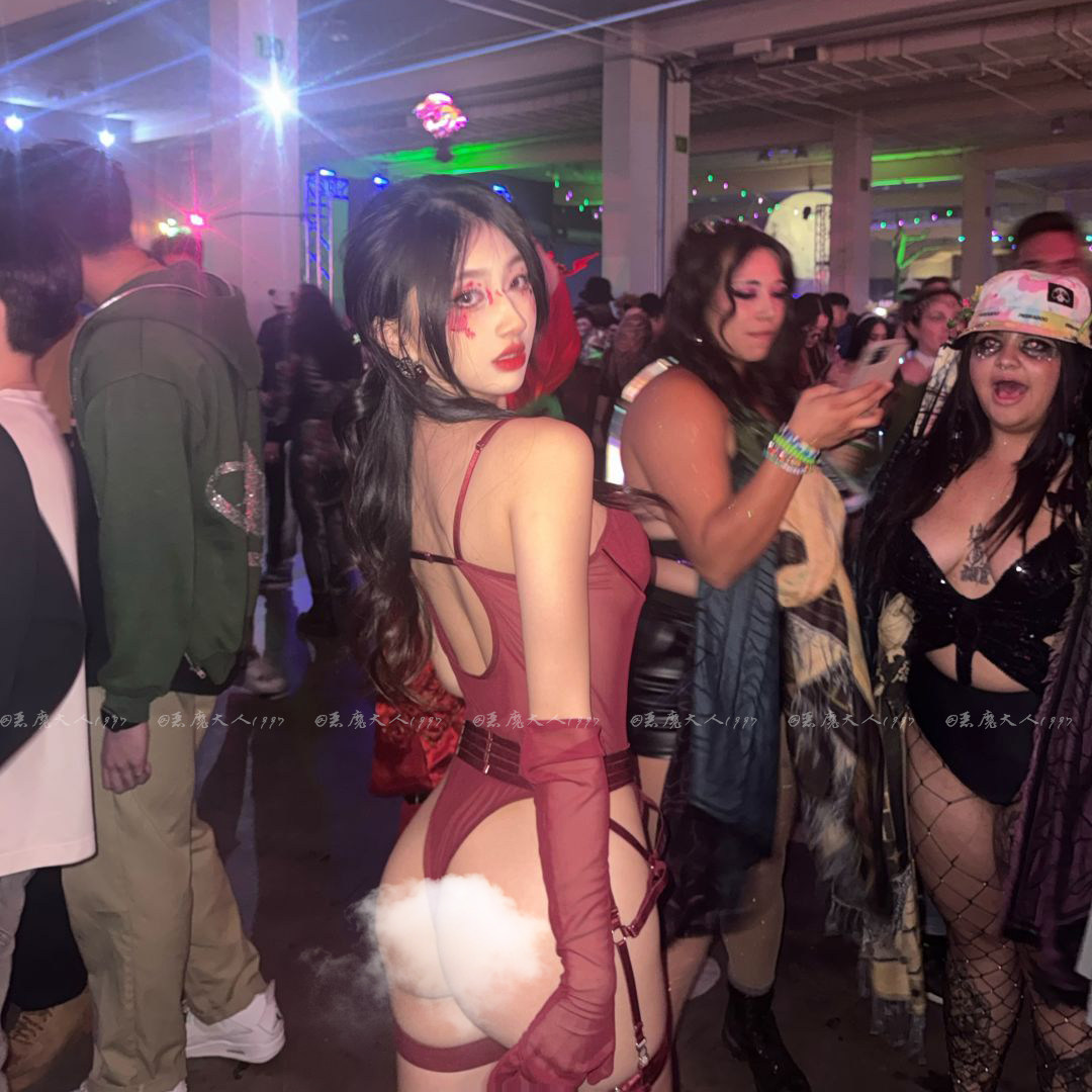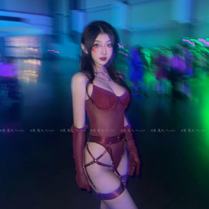 恶魔大人纯欲酒红色修身网纱情趣性感连体衣御姐吊带绑带约会内衣