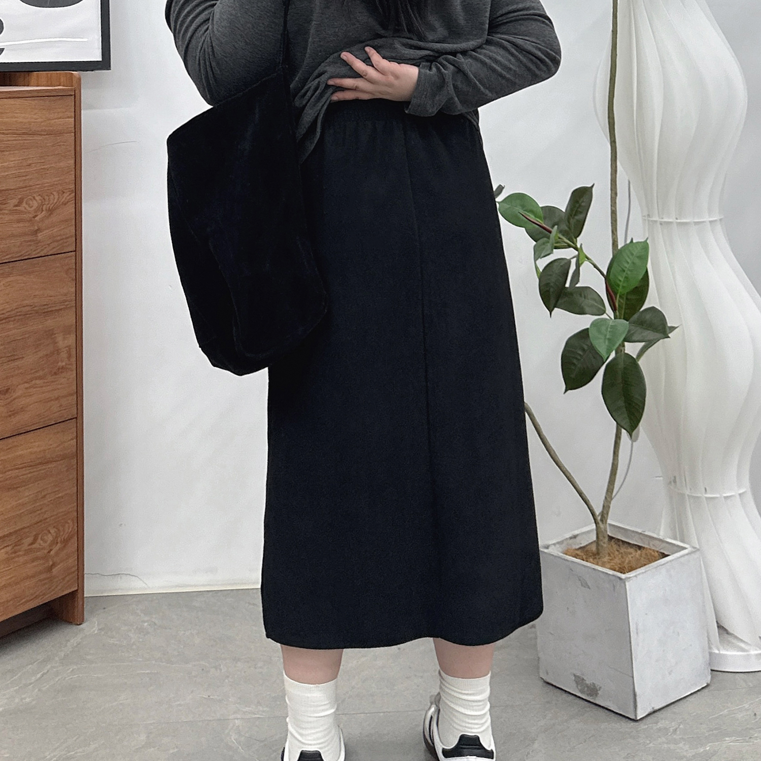 秋冬大码高腰宽松开叉半身裙女胖mm黑色包臀a字裙显瘦遮肚直筒裙