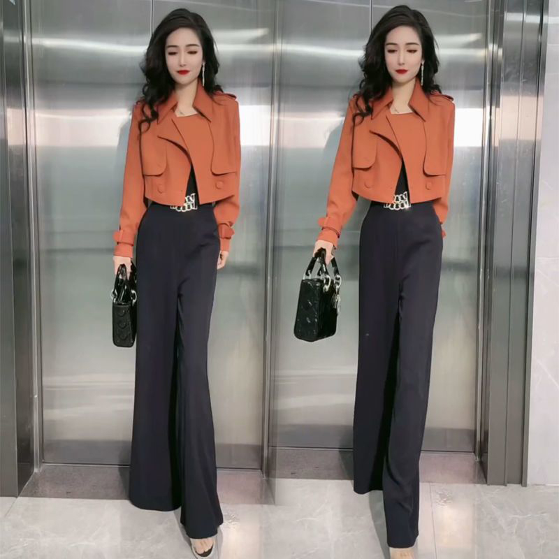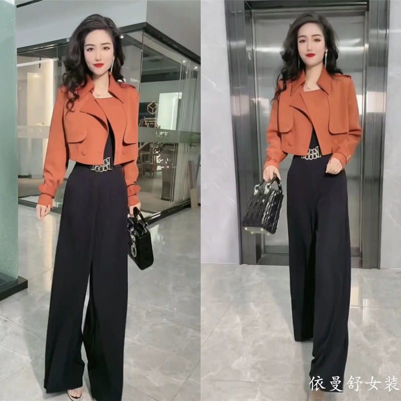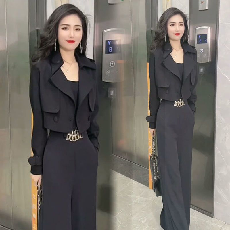 2025春夏新款时尚连体裤套装洋气显瘦短款上衣外套阔腿裤两件套女