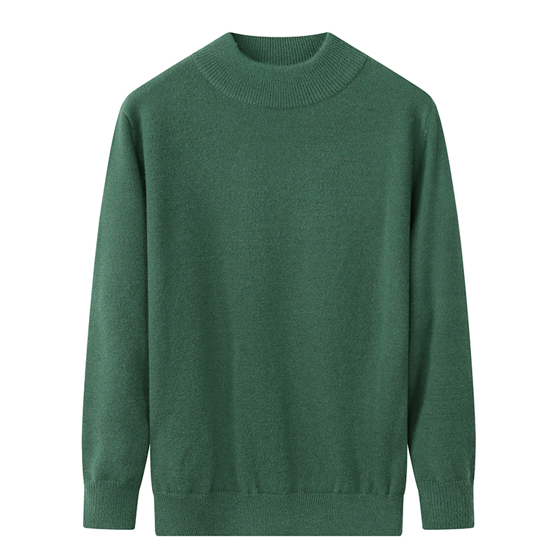 秋冬加厚保暖 绒面舒适黑色半高领针织衫商务纯色套头绿色毛衣男