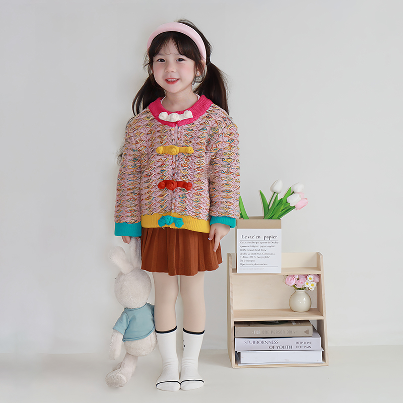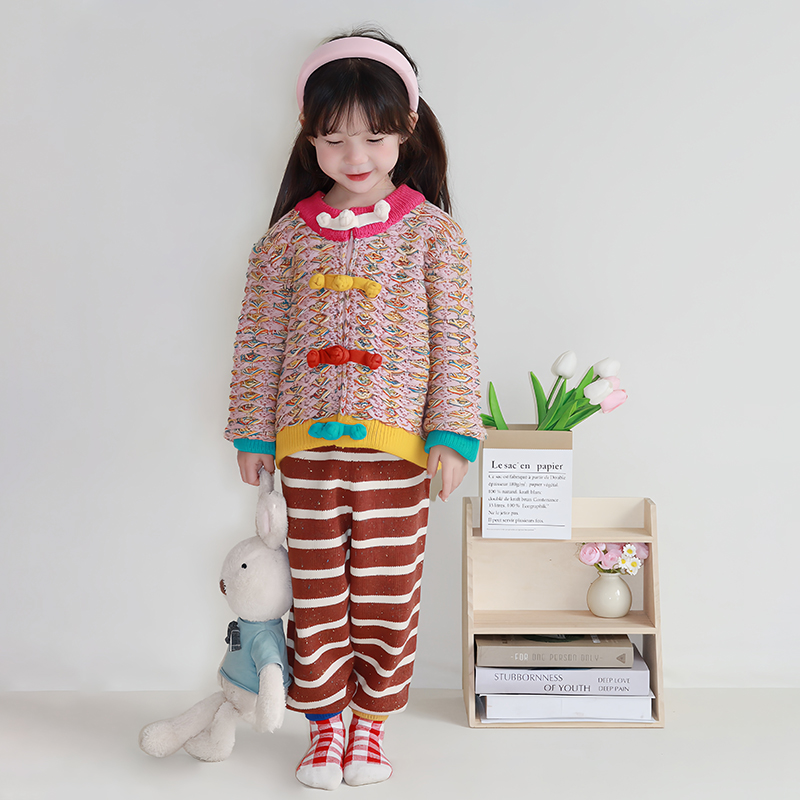 小蜜糖童装男童女童新中式龙鳞唐装秋冬儿童撞色大盘扣毛衣开衫潮
