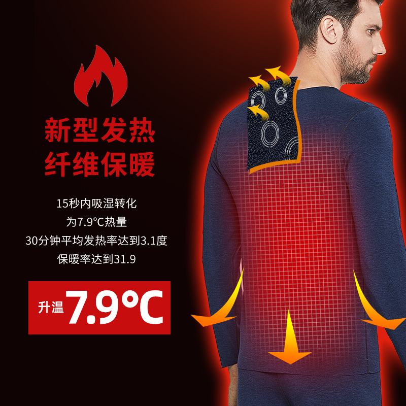 七匹狼发热保暖内衣男士加绒德绒套装青年超薄款紧身低领无痕德容
