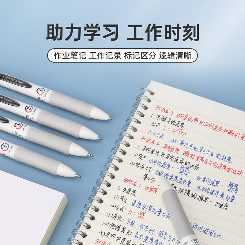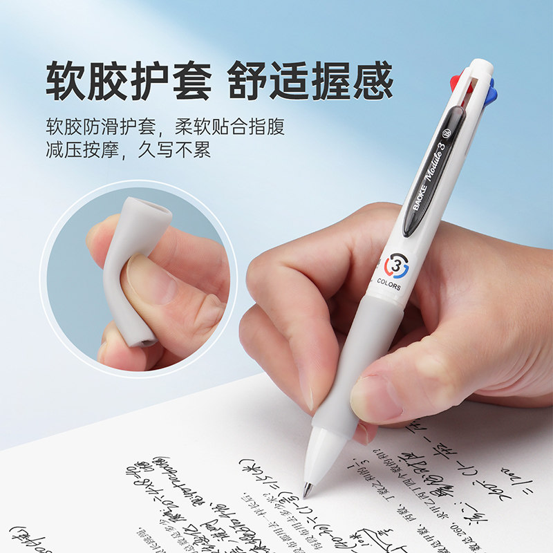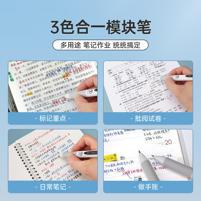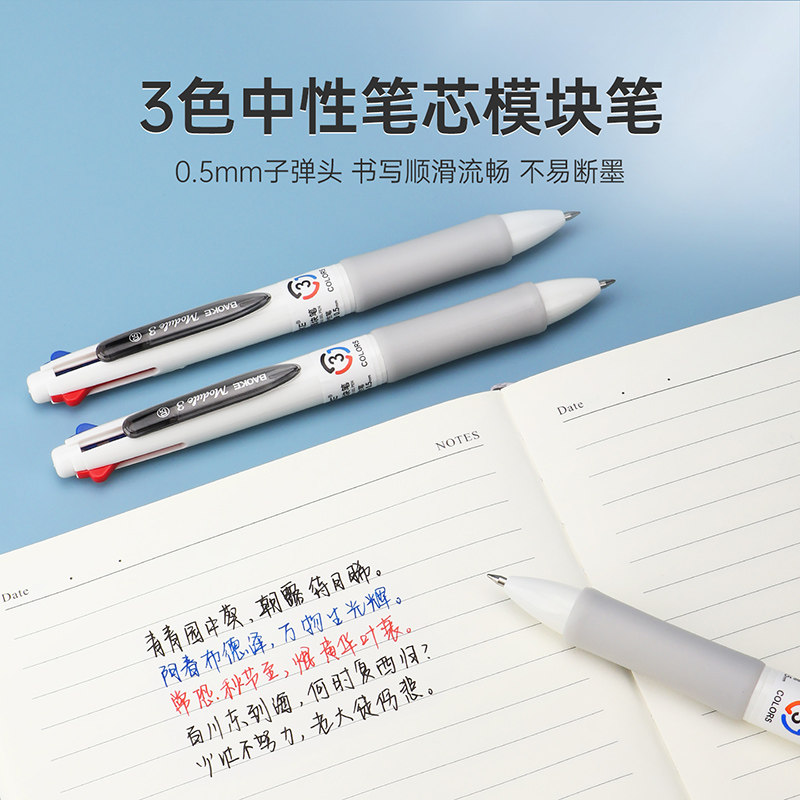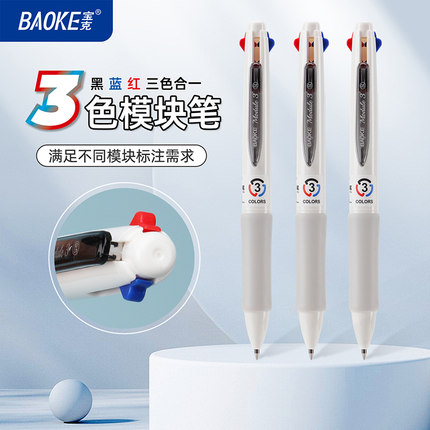 宝克三色合一中性笔速干顺滑学生多功能三色笔做笔记专用模块笔