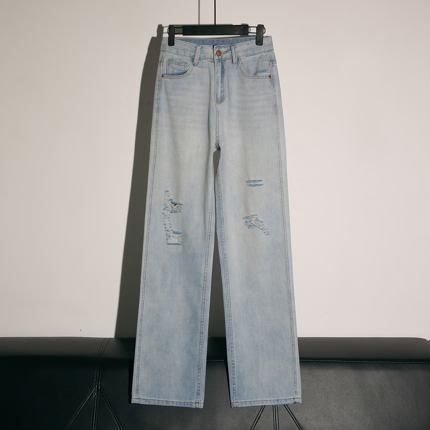 浅色破洞阔腿牛仔裤女2025秋季新款高腰小个子宽松垂感百搭直筒裤