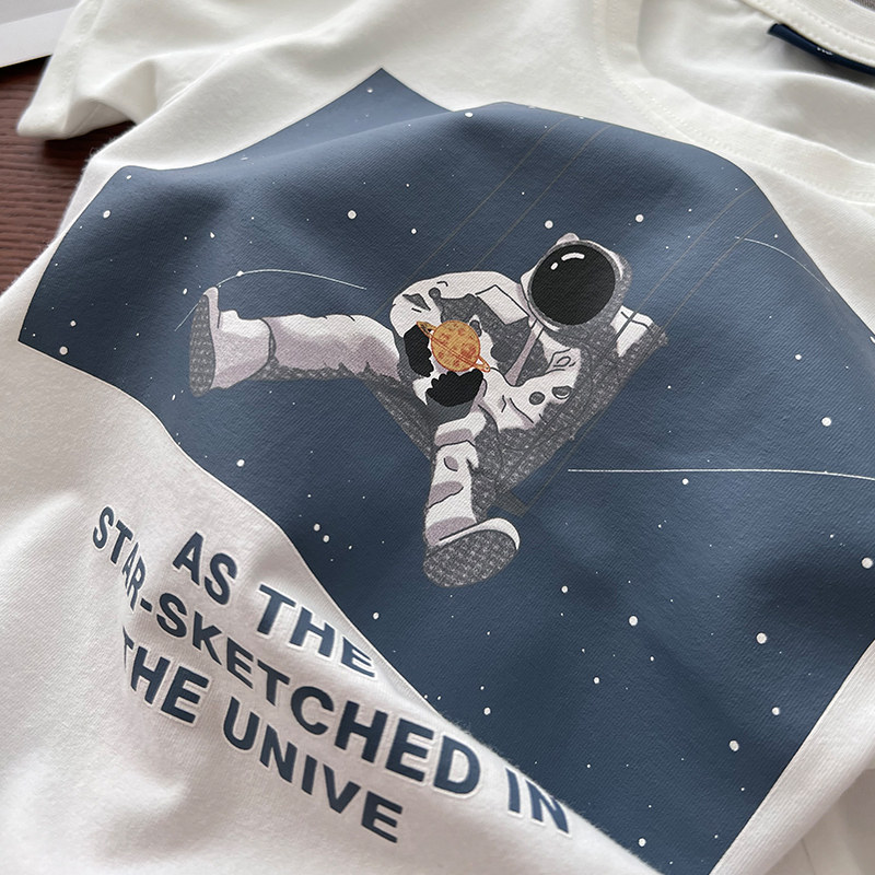 太空人流星雨~夏季男童纯棉短袖T恤中大童休闲汗衫儿童圆领上衣