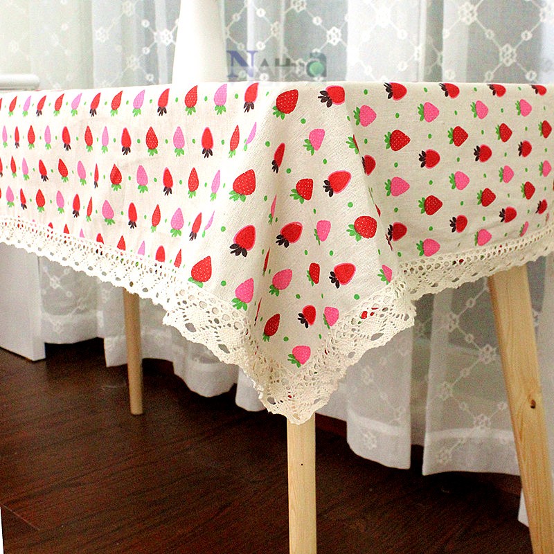 田园风草莓蕾丝桌布小清新可爱餐桌布棉麻茶几盖布少.女梳妆台布