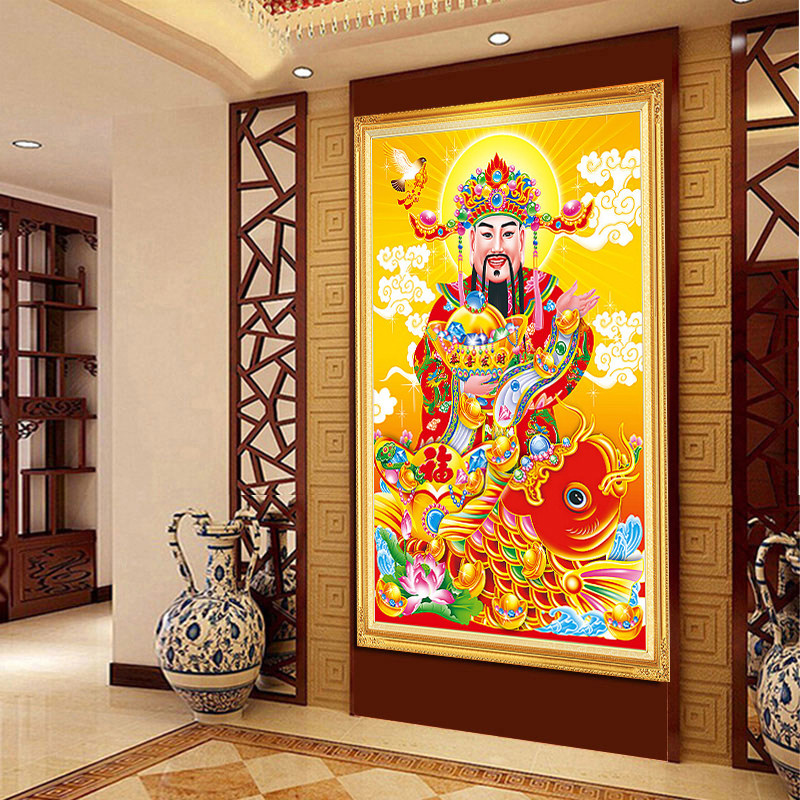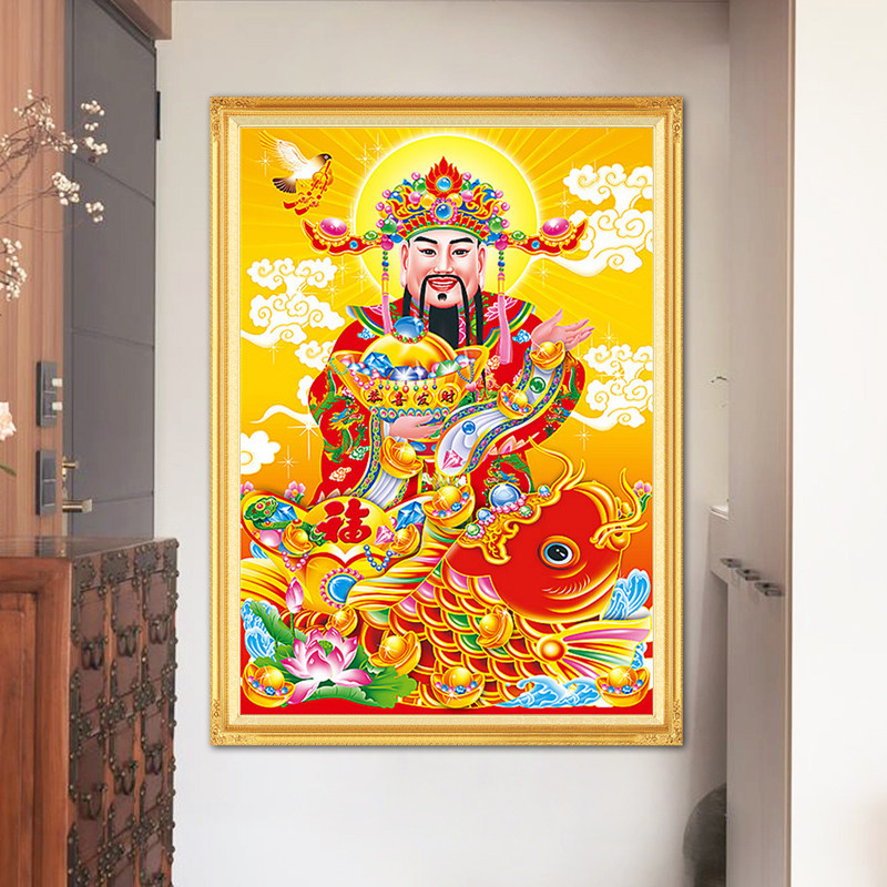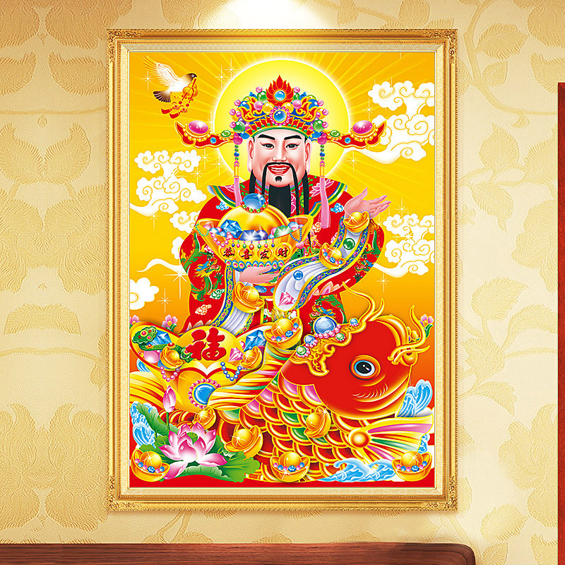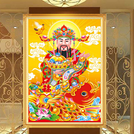 宣绒布钻石画2026新款满钻玄关贴钻画财神爷钻石绣客厅恭喜发财
