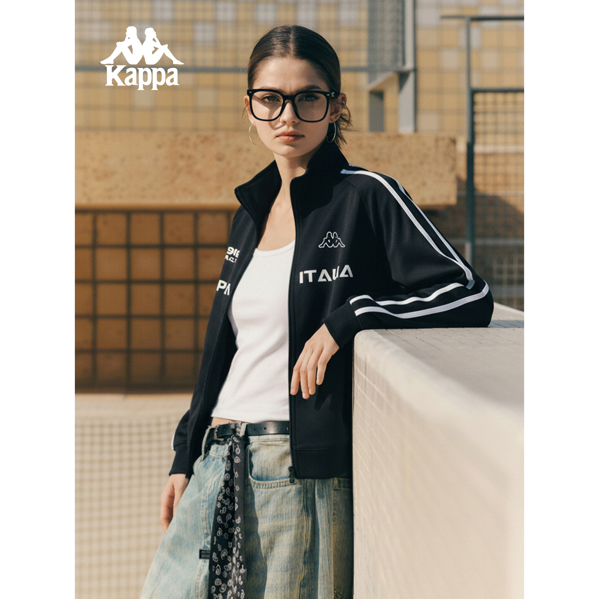 Kappa卡帕背靠背运动外套女2025新款秋季短款显瘦夹克针织衫上衣