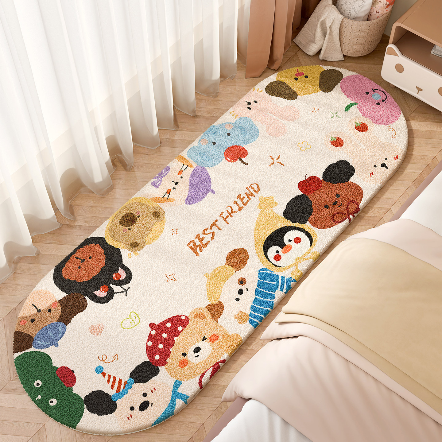 卡通可爱多巴胺床边毯儿童房间男孩女孩卧室地垫ins风地毯床边垫