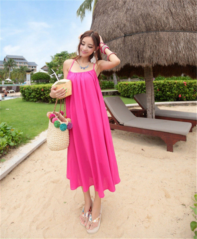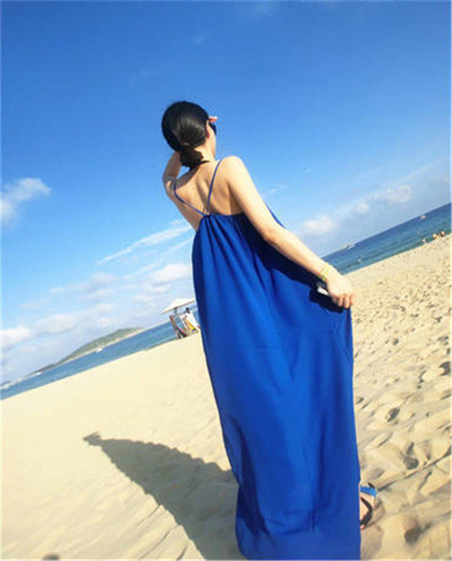 夏季新款波西米亚夏度假大码度假沙滩裙长裙拖地长裙子吊带连衣裙