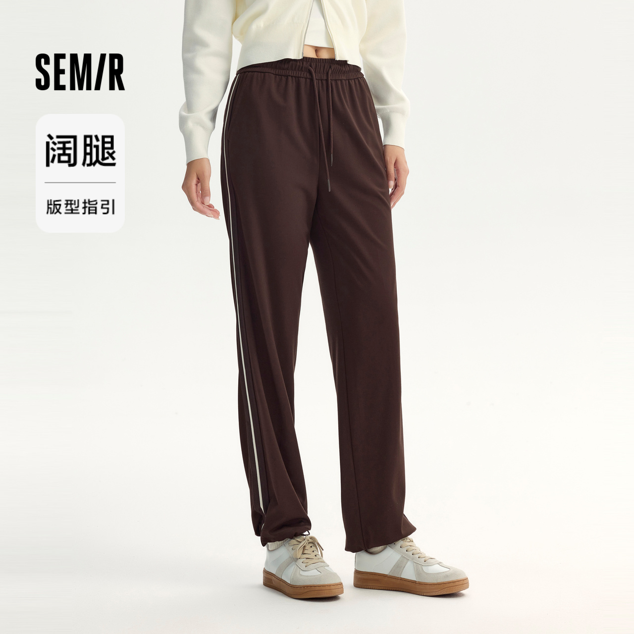 [商场同款]森马休闲裤女撞色阔腿裤条纹2025新款秋季长裤运动裤