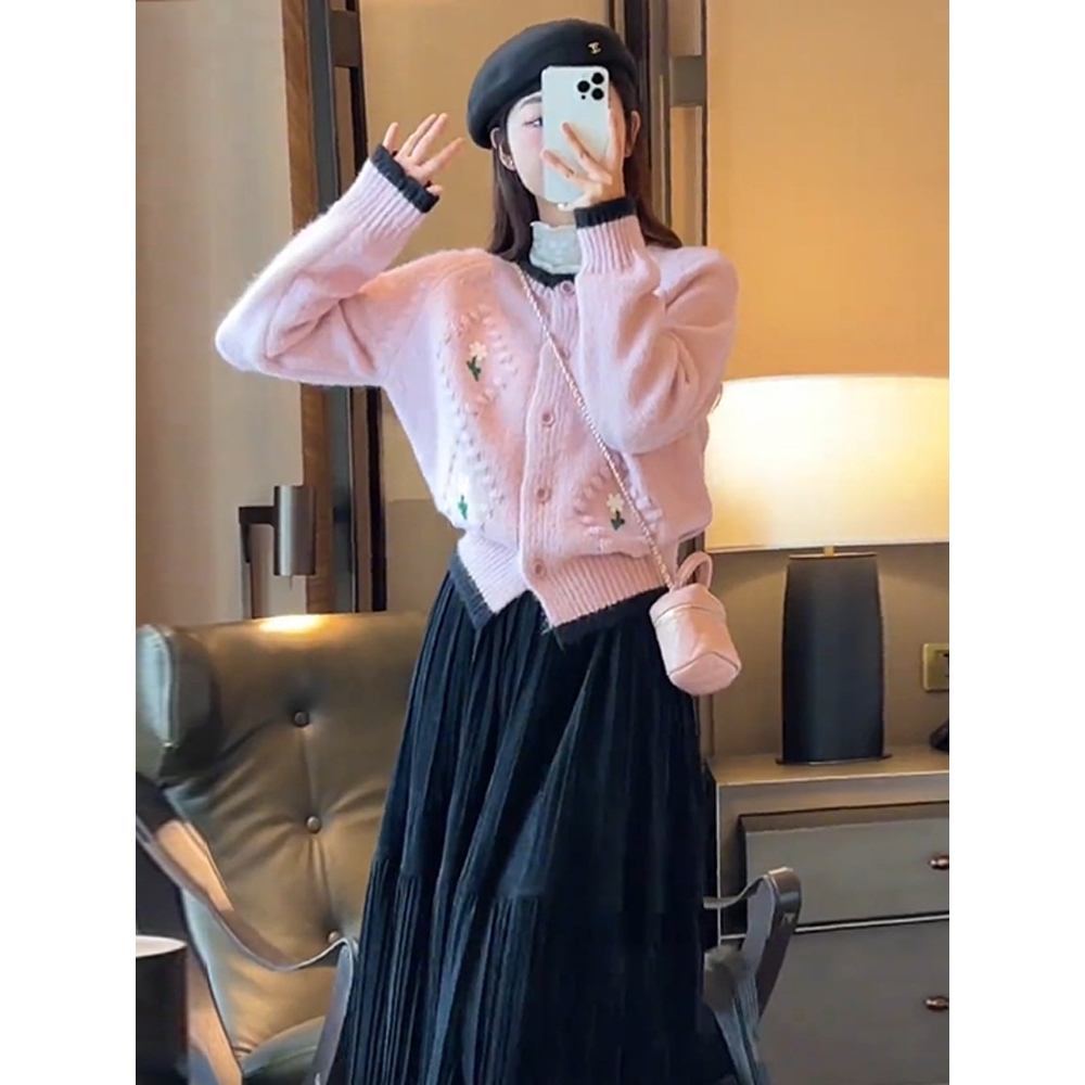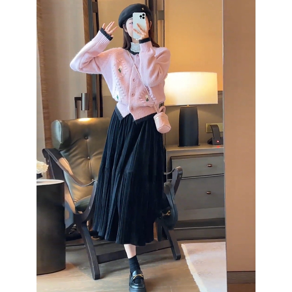 深冬装搭配一整套女2025小香风盐系轻熟气质毛衣时尚套装连衣裙子