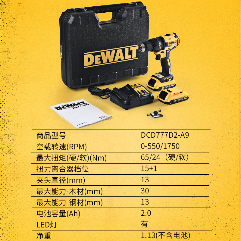 优选得伟无刷电钻锂电手钻电动充电钻电钻无线枪钻多功能手电钻DC