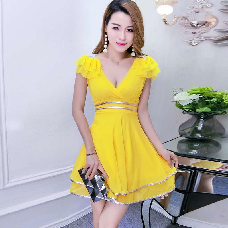 低胸性感夜店女装弹力网纱深V连衣裙名媛气质夜总会佳丽小礼服潮