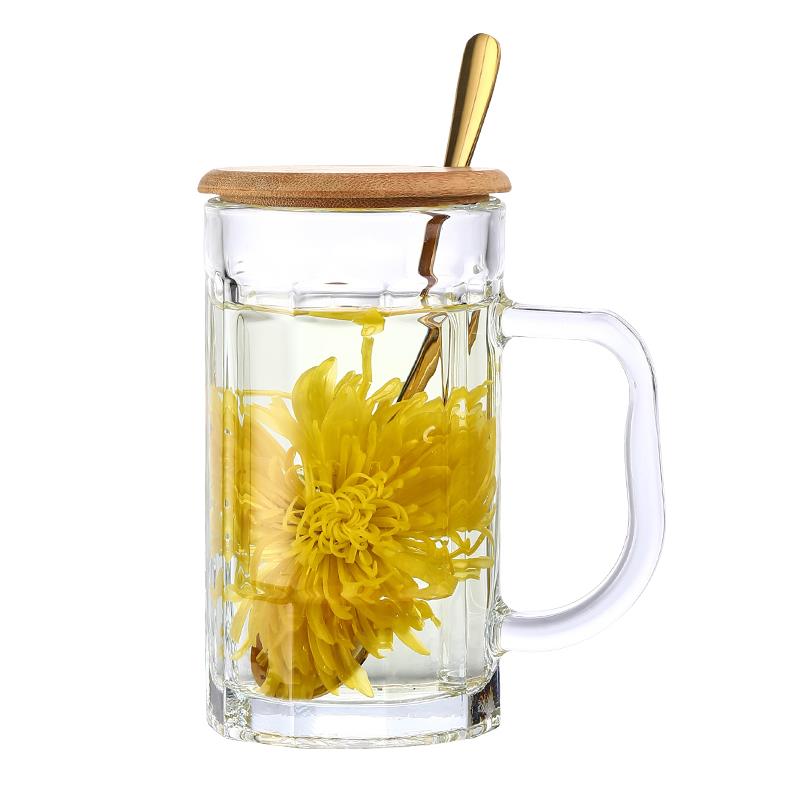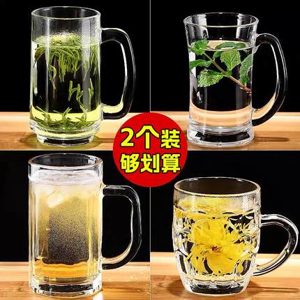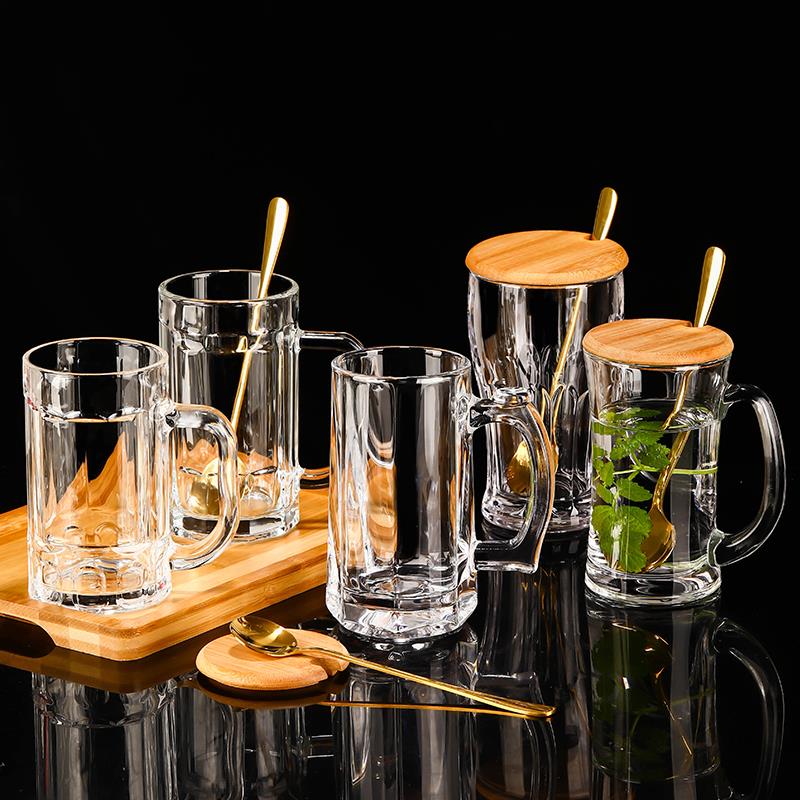 家用啤酒杯子带把手盖玻璃杯透明大号扎啤杯酒吧喝水杯泡茶杯加厚