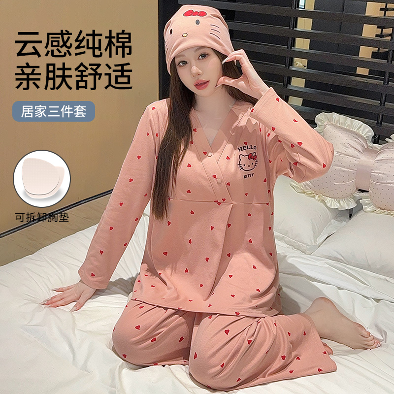 送月子帽-月子服孕妇冬纯棉哺乳睡衣产后喂奶产妇家居服秋冬加厚