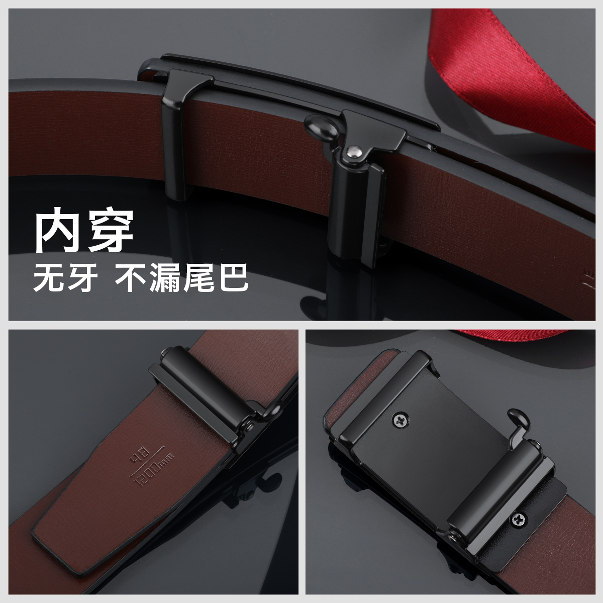 鳄鱼2024新款男士皮带牛皮自动扣无牙内穿年轻人潮商务真皮裤腰带