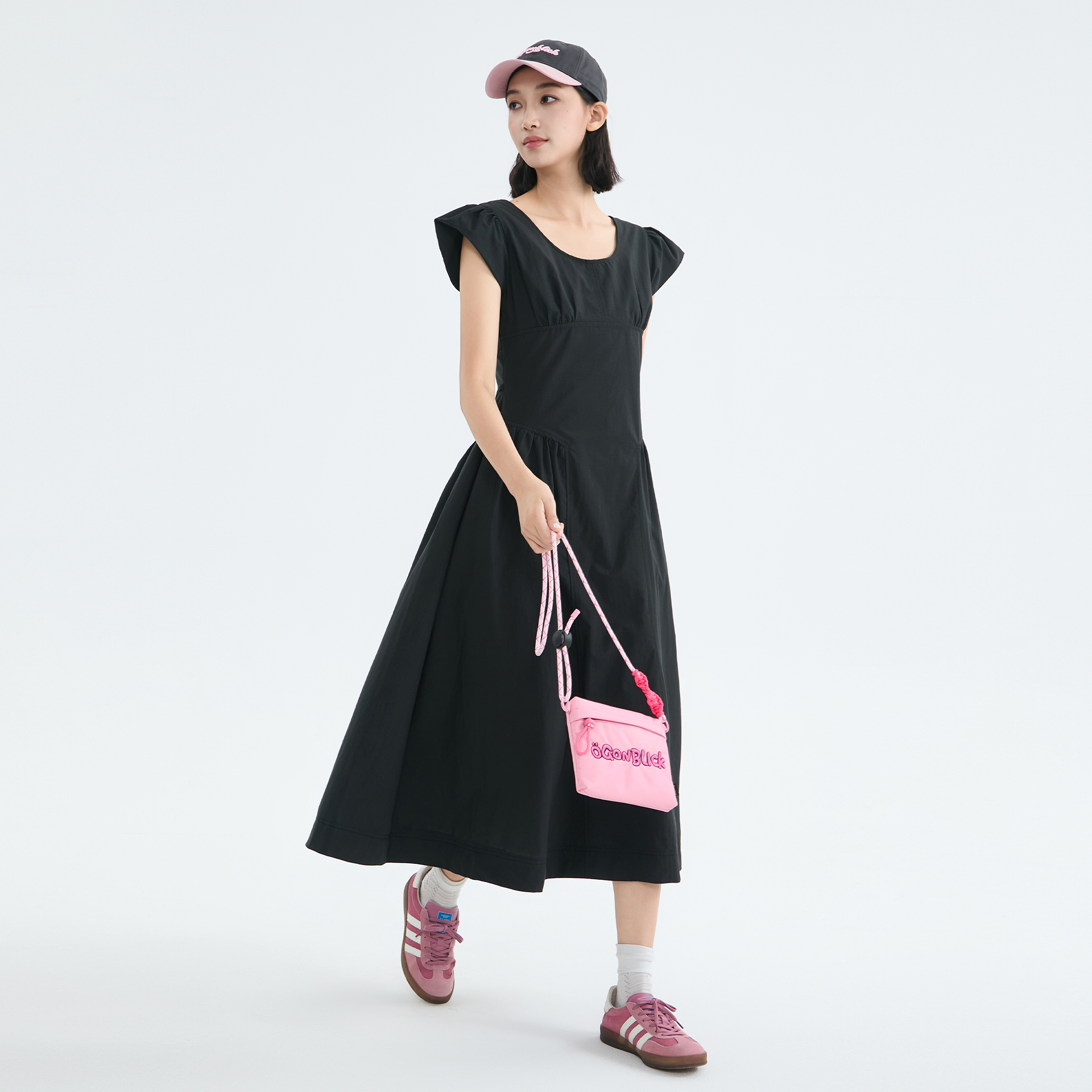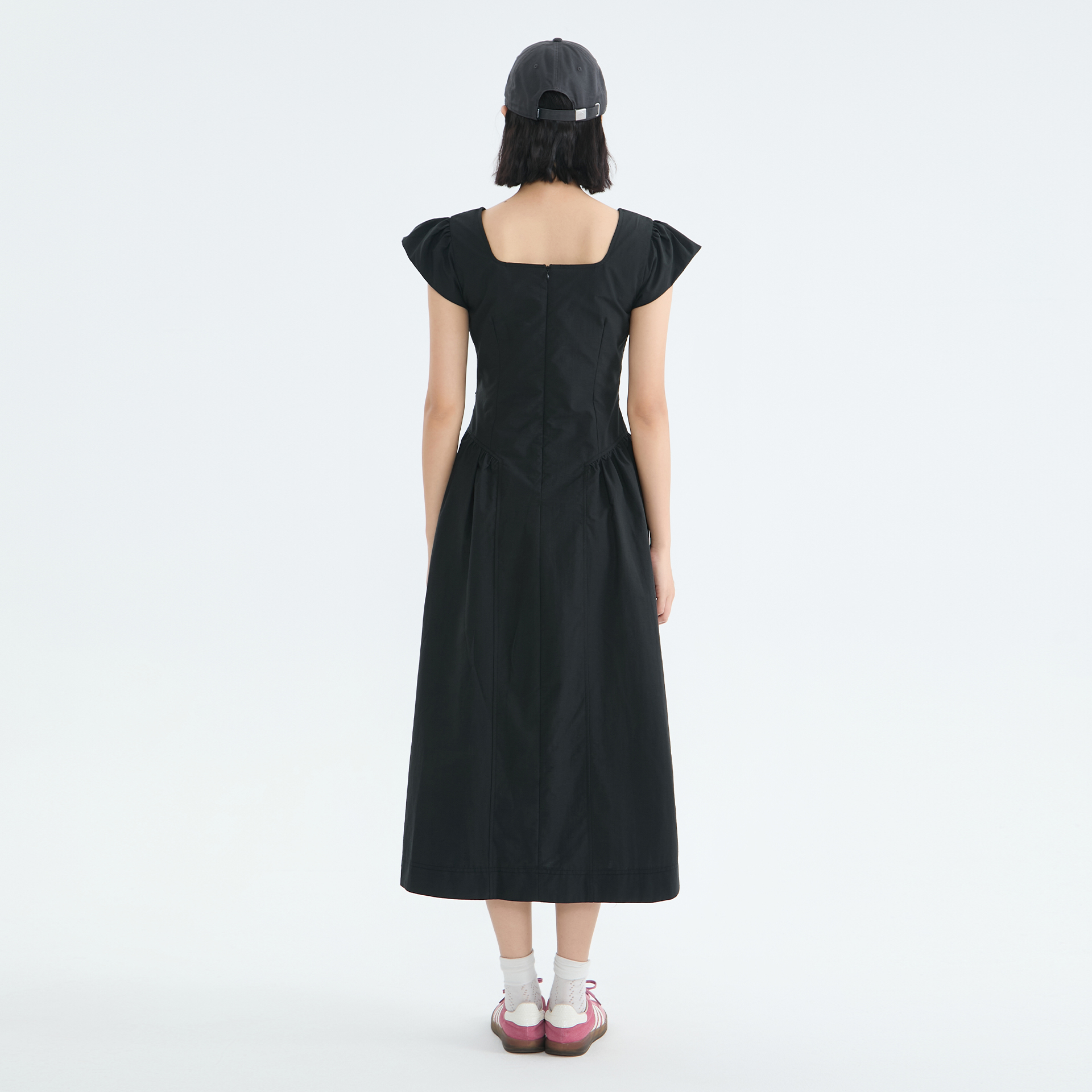 商场同款北欧时刻法式赫本风黑色连衣裙女夏季新款小飞袖中长裙子