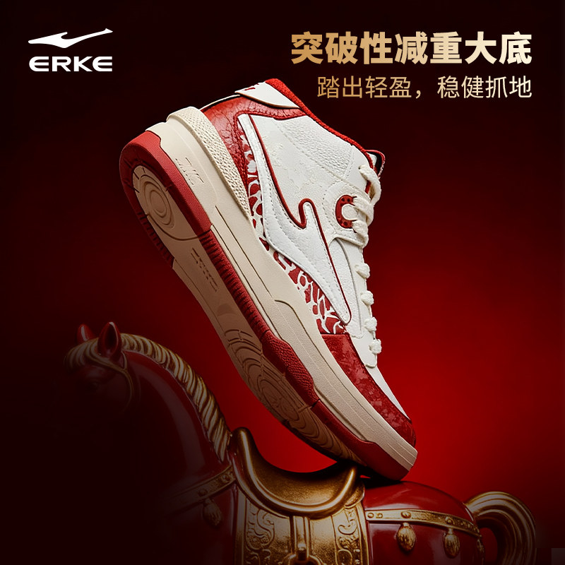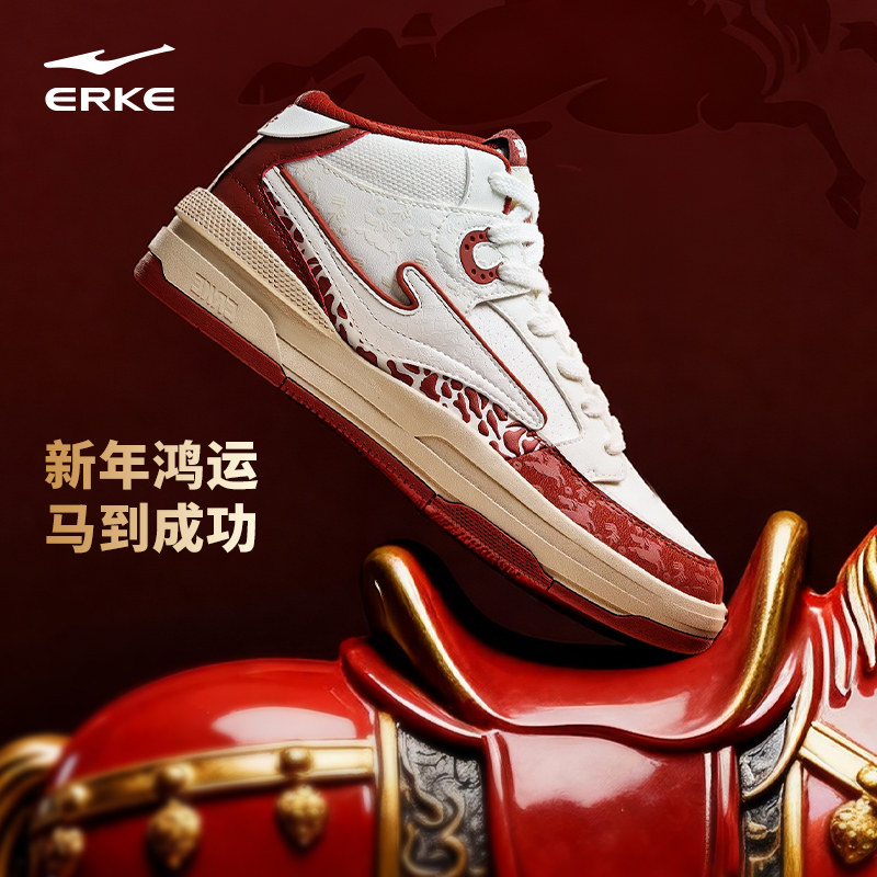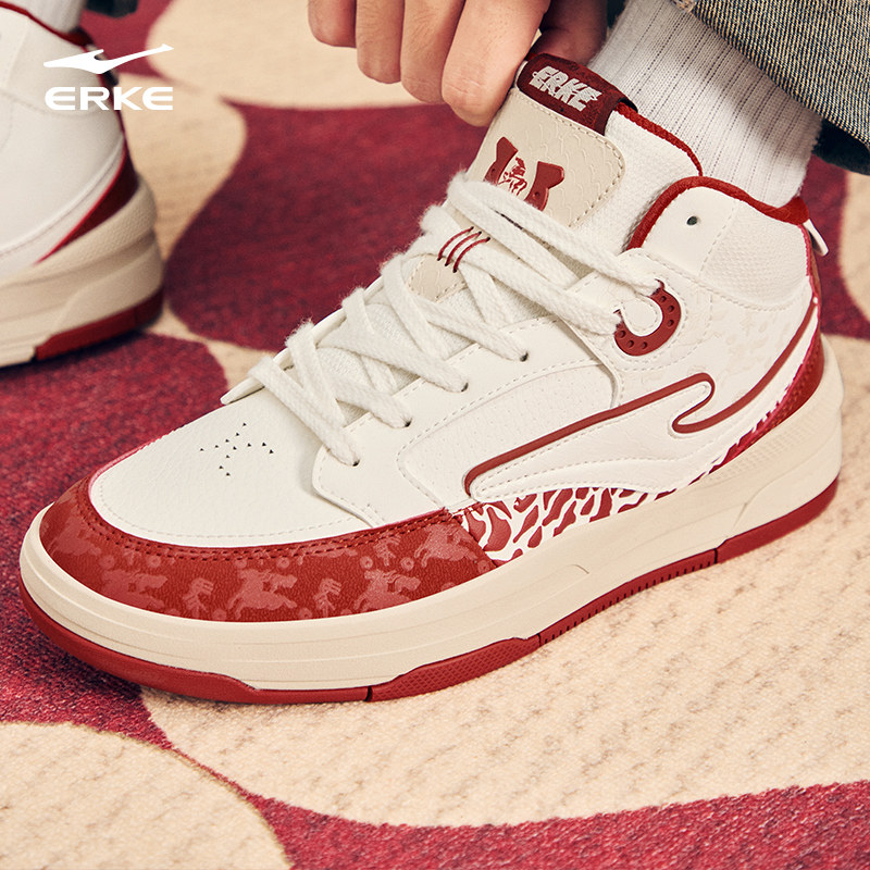 鸿星尔克男鞋板鞋无双3.0高帮五花马2025新款红白色板鞋运动鞋子