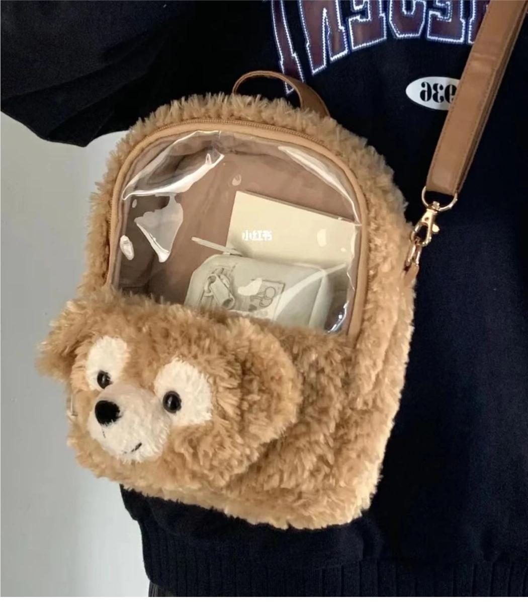 出租上海迪士尼乐园玲娜贝儿痛包达菲斜挎背包透明包随身小包租赁
