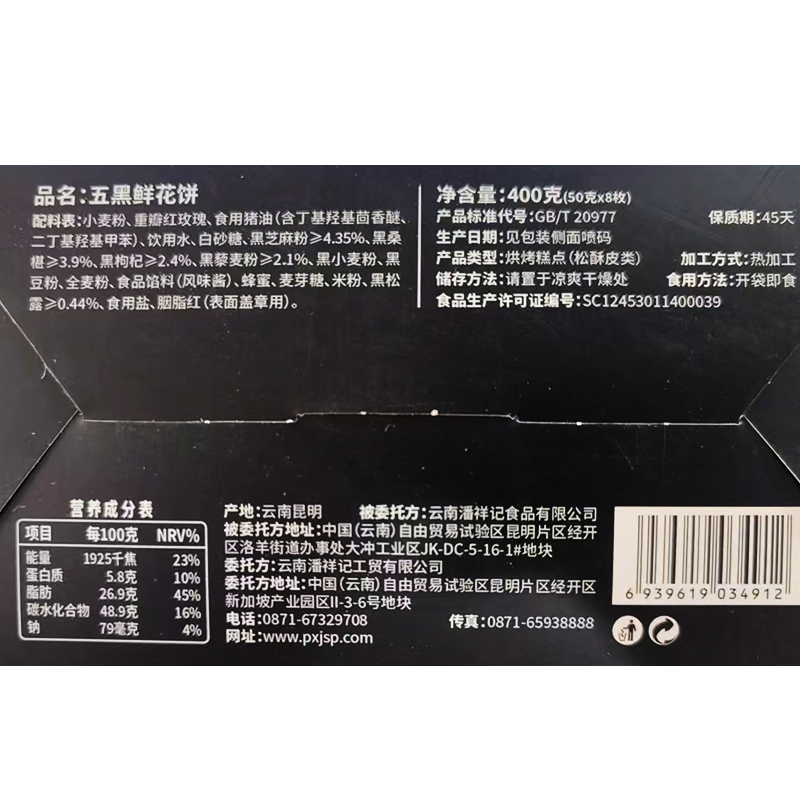 潘祥记五黑鲜花饼400g云南特产糕点心零食小吃传统糕点心早餐饼干