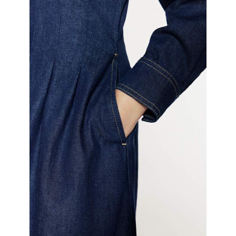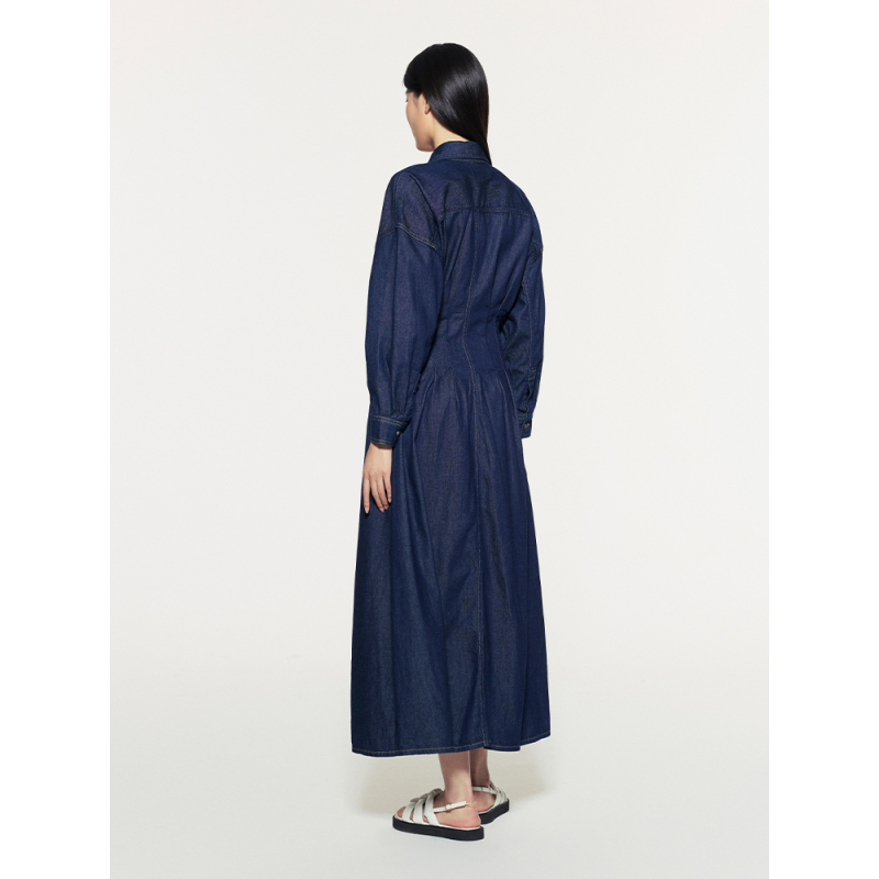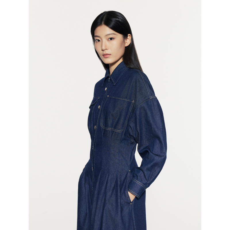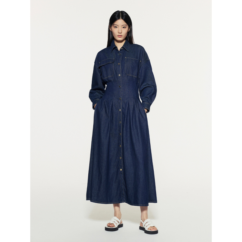 FRAME女士长袖收腰纽扣牛仔连衣裙长裙美式复古