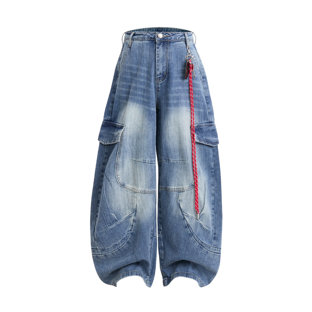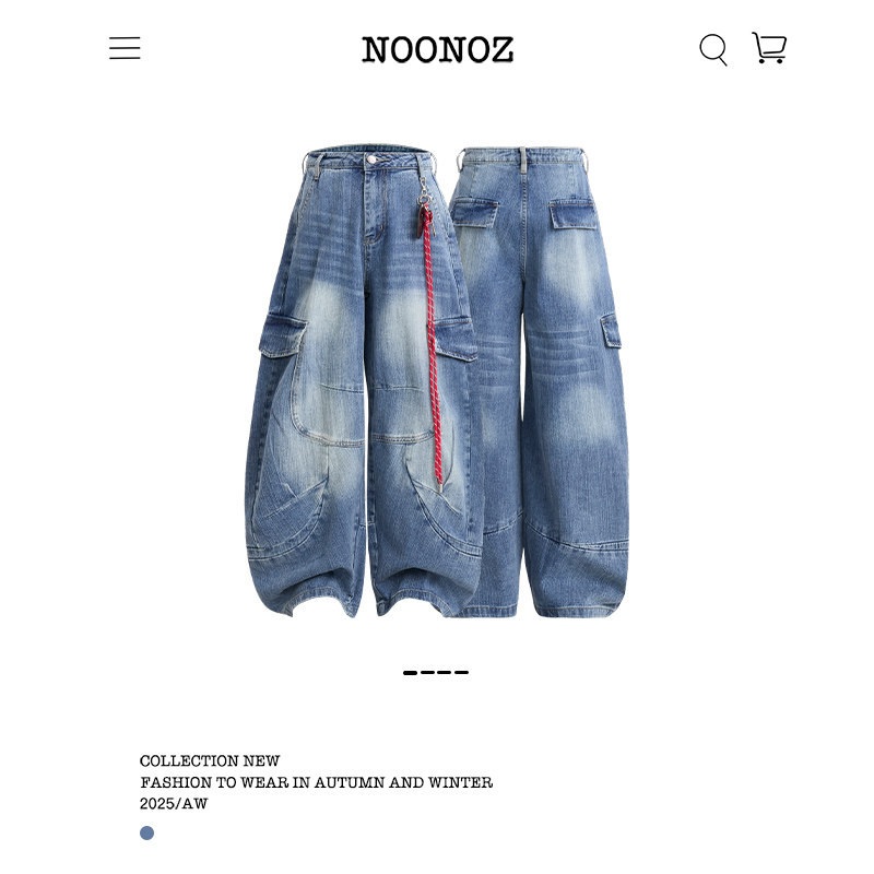NOONOZ潮牌美式解构重工弯刀牛仔裤男做旧水洗垂感多口袋阔腿长裤