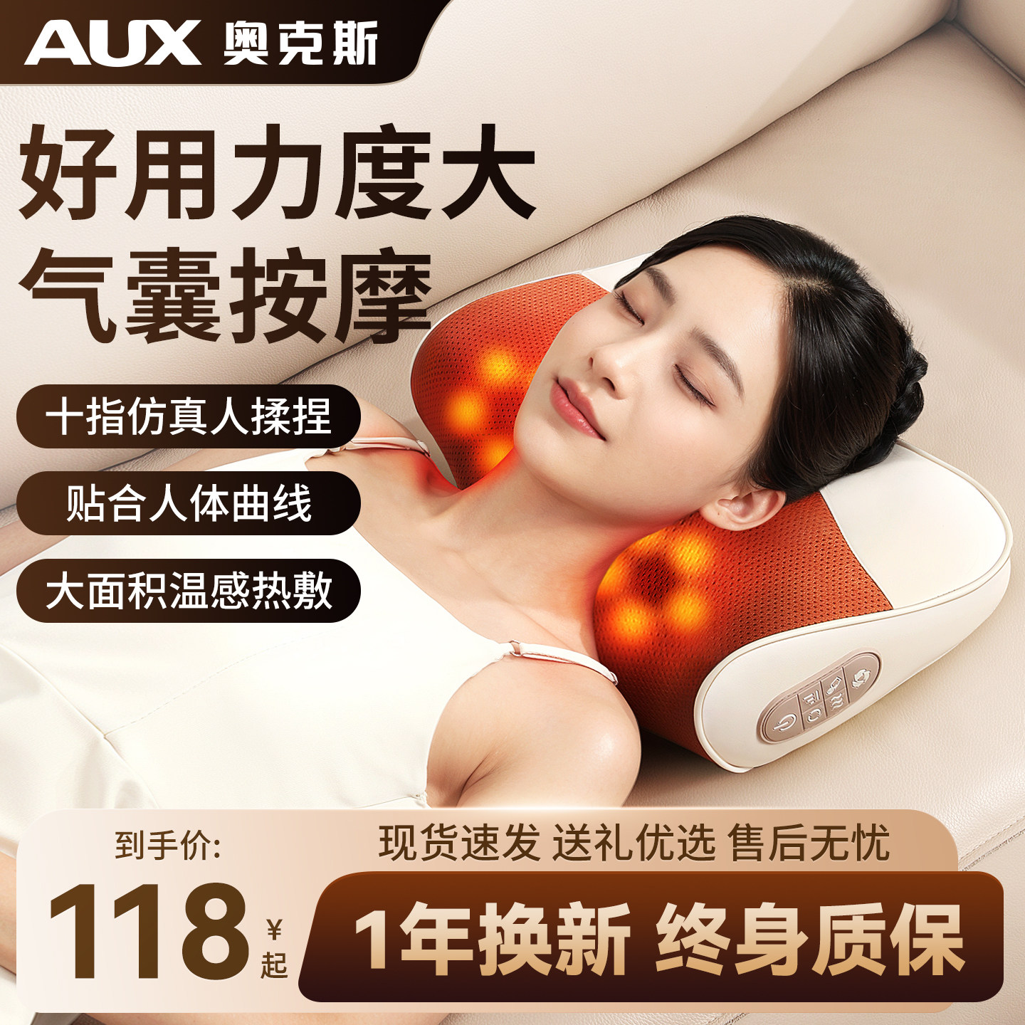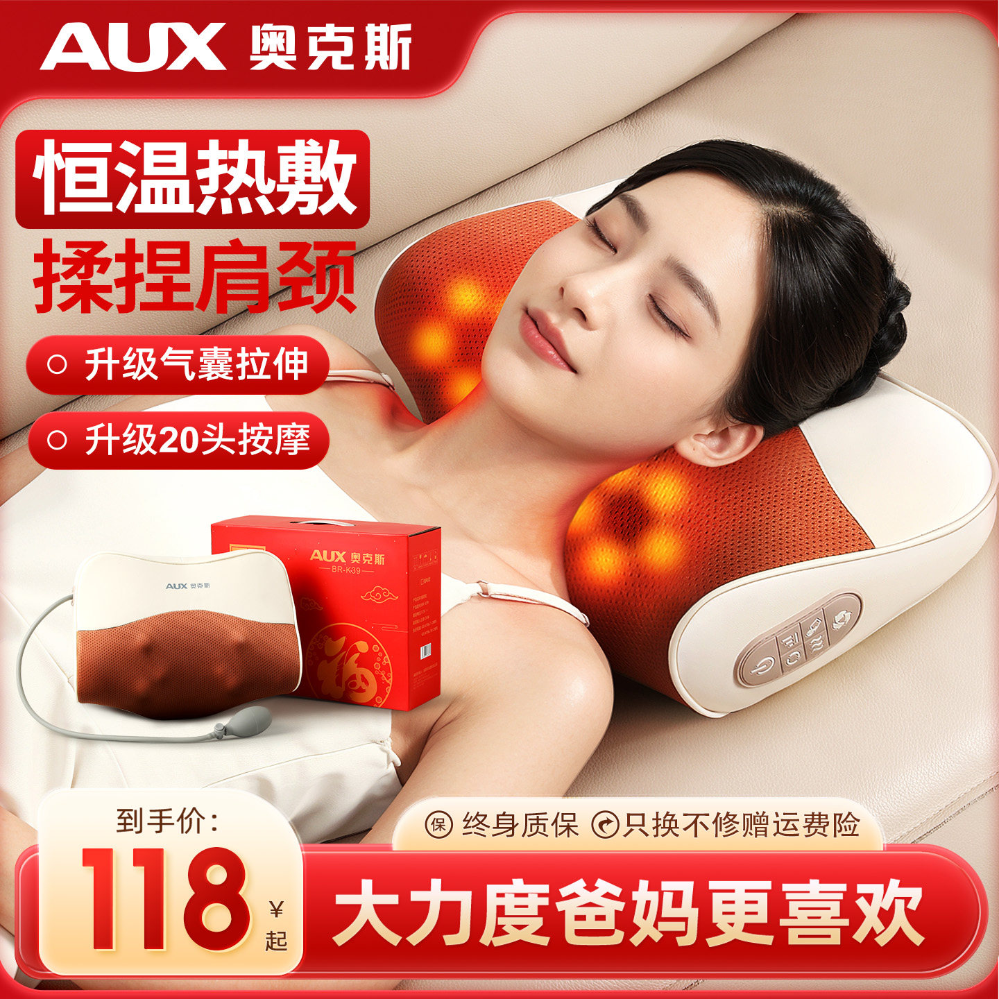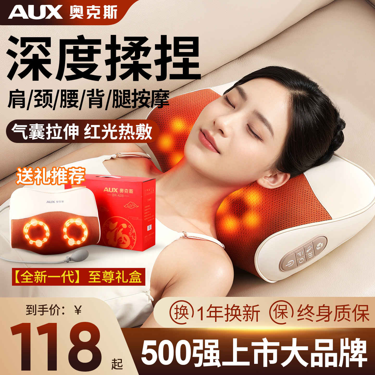 奥克斯颈椎按摩神器正品肩脖子腰部背部多功能全身自动揉捏仪枕头
