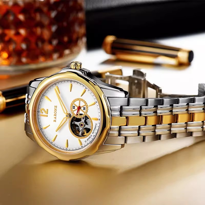 Rarone雷诺手表男款自动机械机芯腕表镂空轻商务钢带节日礼物