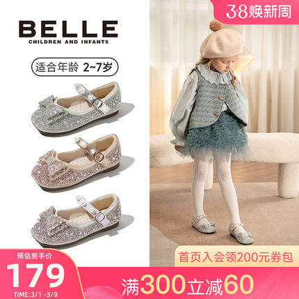 百丽童鞋女童水晶公主鞋2026新款春季小女孩爱莎水钻软底鞋小皮鞋