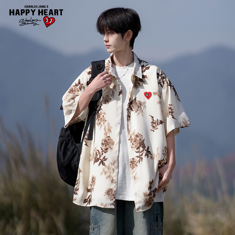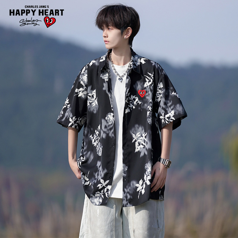 查尔斯桃心夏威夷沙滩短袖衬衫男