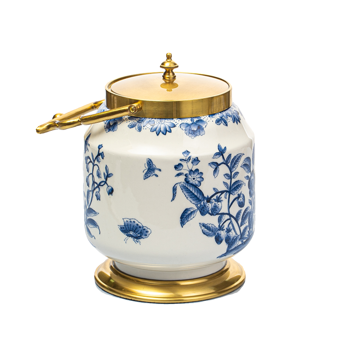 欧式高档奢华陶瓷配铜提壶摆件美式创意样板间别墅客厅玄关储物罐