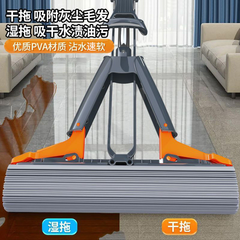 海绵拖把2026新款家用一拖净干湿两用吸水免手洗胶棉头卫生间拖布