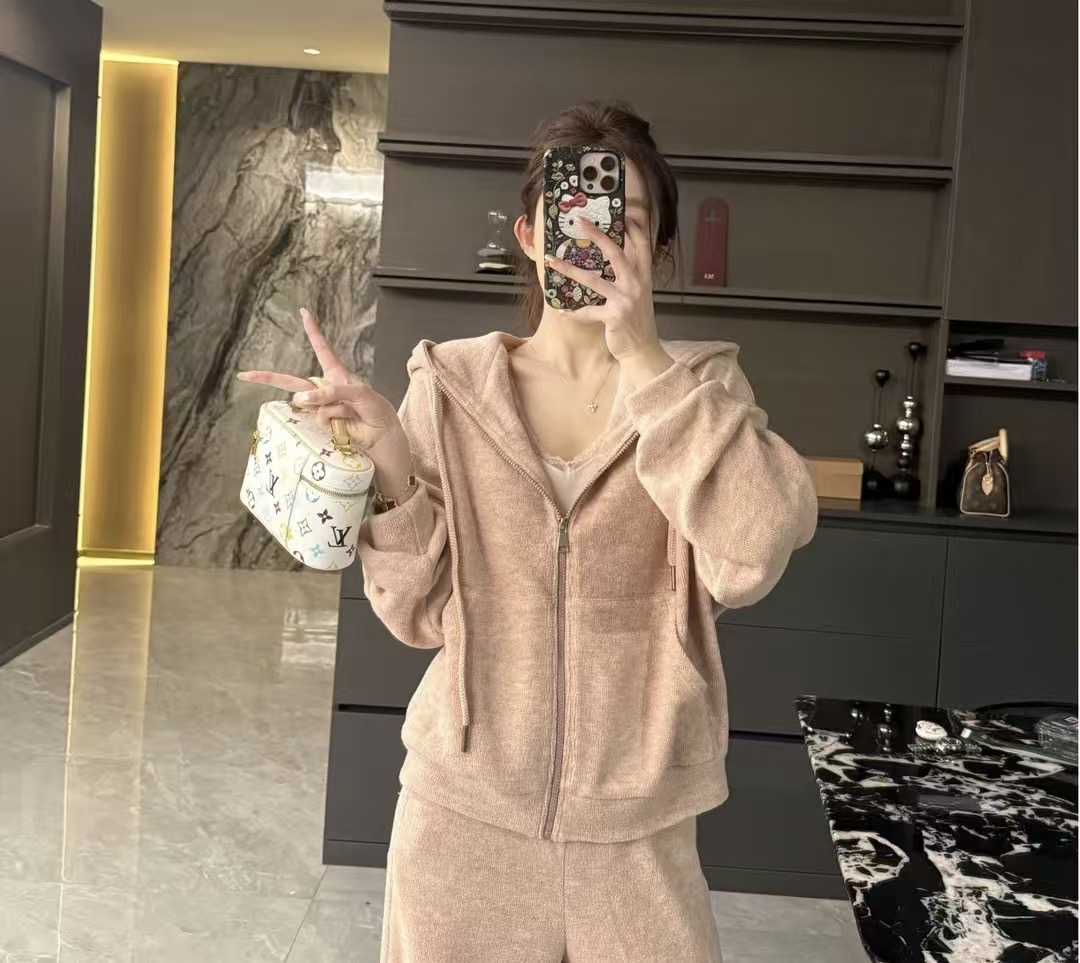 2025年新款休闲运动服套装女春季洋气显瘦连帽开衫阔腿裤时尚两件