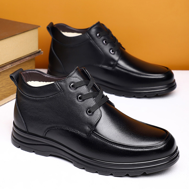 意尔康棉鞋男冬季头层牛皮羊毛加绒厚保暖中老年人爸爸高帮皮鞋男
