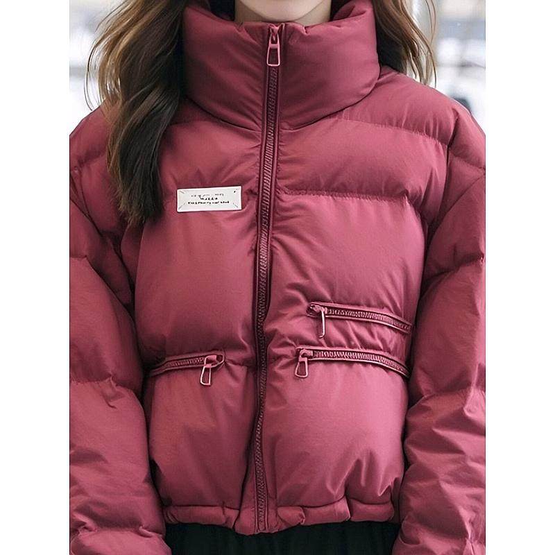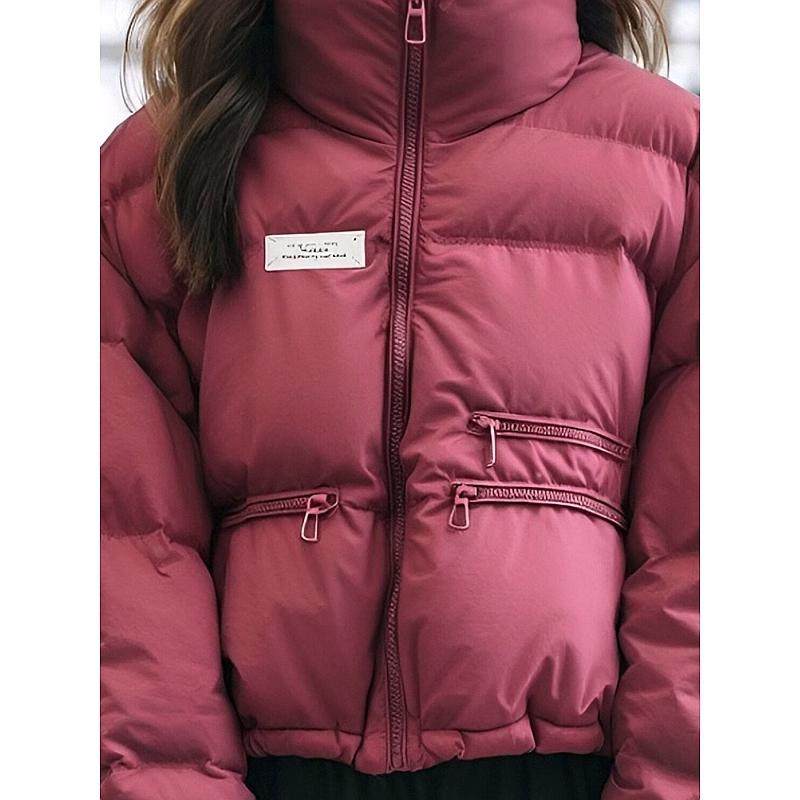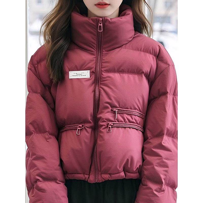 2024冬季红色立领短款羽绒棉服女超好看面包服韩系百搭棉衣外套潮