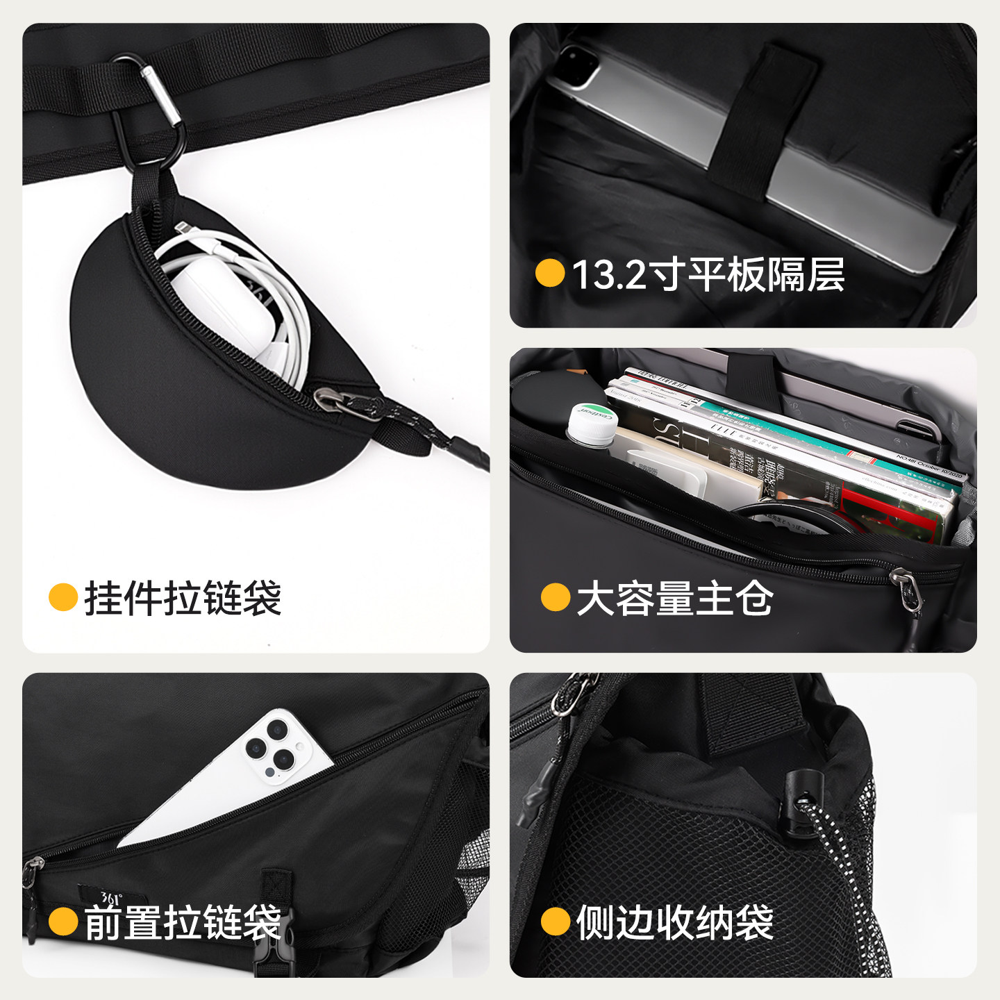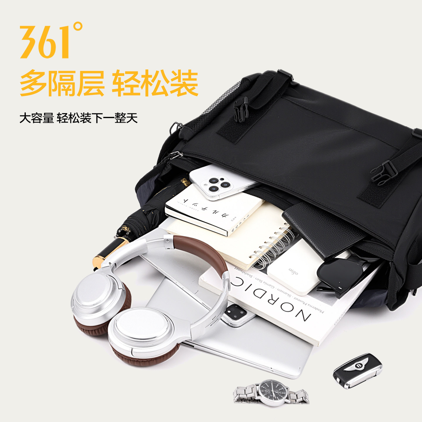 361°男士斜挎包大容量外出便携单肩包男款多功能通勤背包高级感