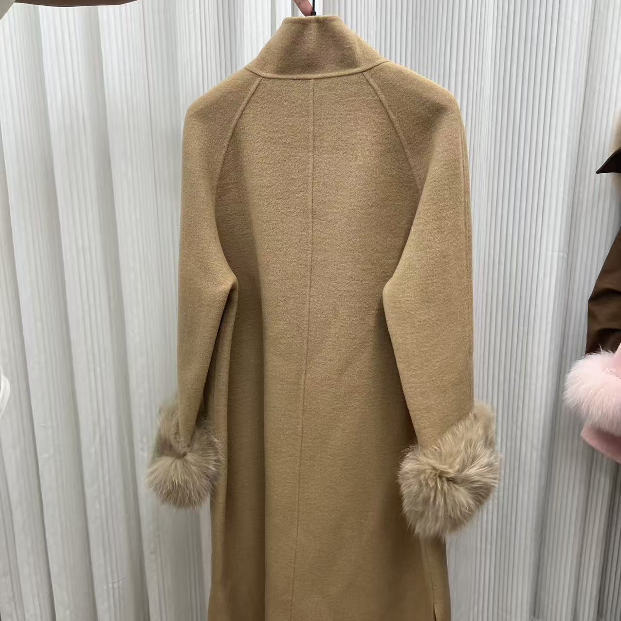 海宁女士时尚保暖双面呢中长款狐狸毛防风大衣保暖外套