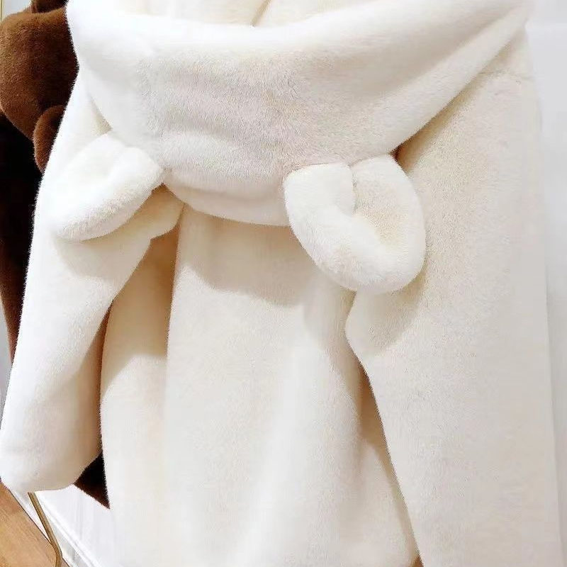 初中高中学生可爱耳朵羊羔毛绒卫衣女宽松韩版加厚连帽毛茸茸外套