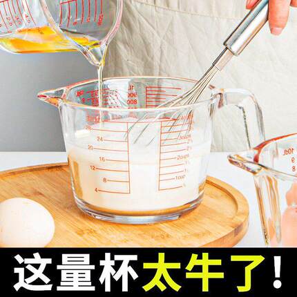 玻璃量杯牛奶豆浆大杯子微波炉热奶专用烘焙杯耐高温带刻度烘焙杯
