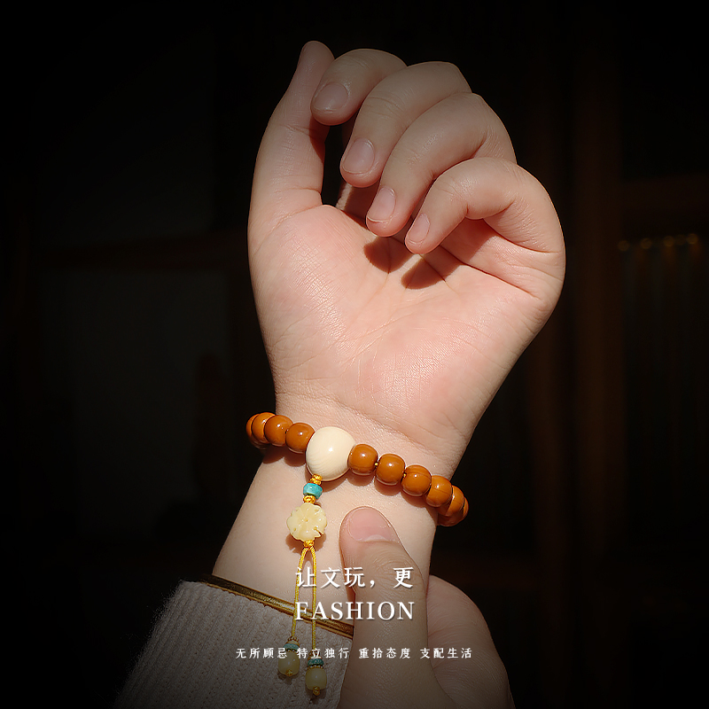 原色冰料猛犸牙三通佛头水滴金刚星月菩提108颗佛珠文玩手串配饰