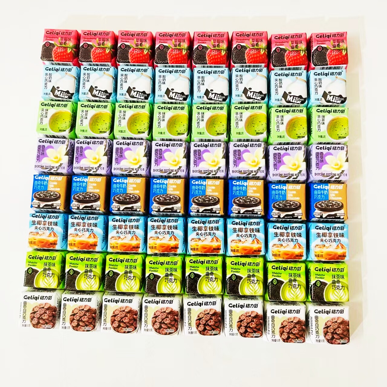 格力奇纯可可脂夹心黑白巧克力整盒曲奇酸牛奶抹茶香儿童年货零食