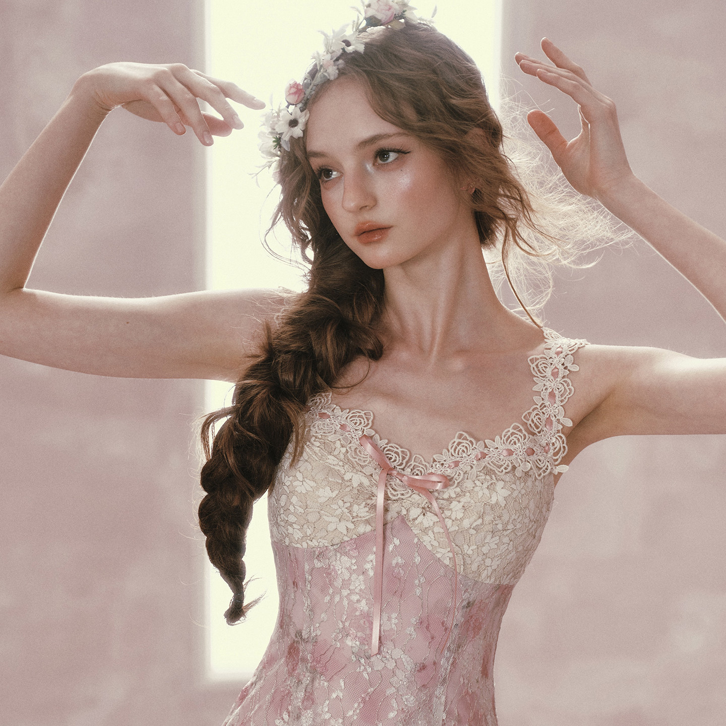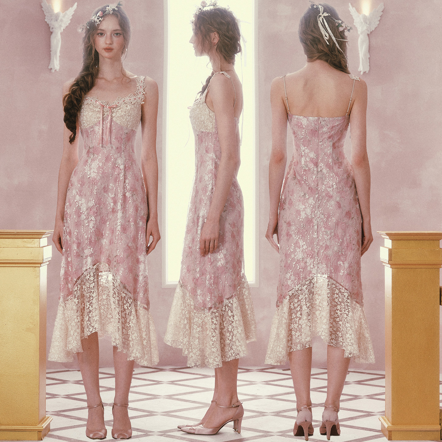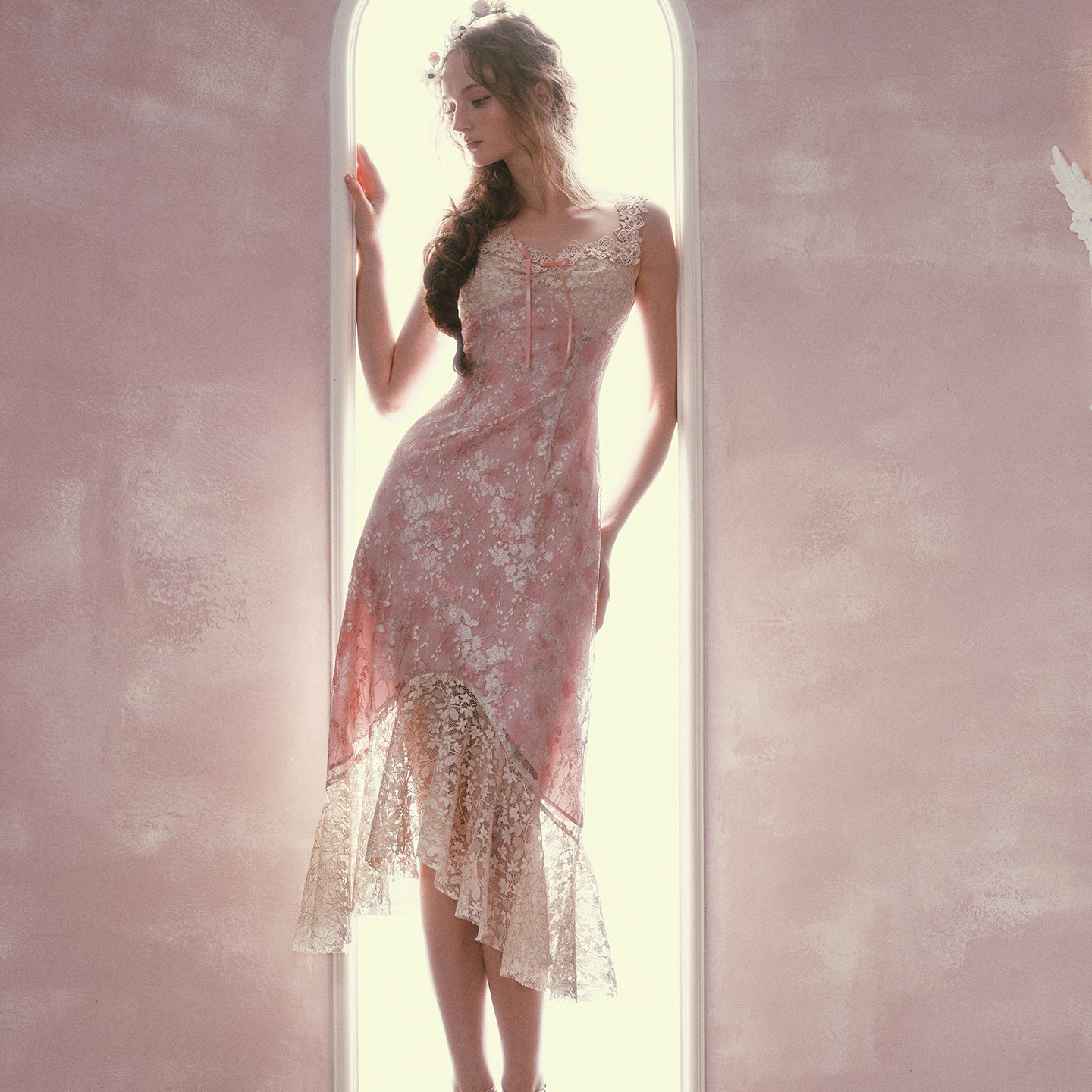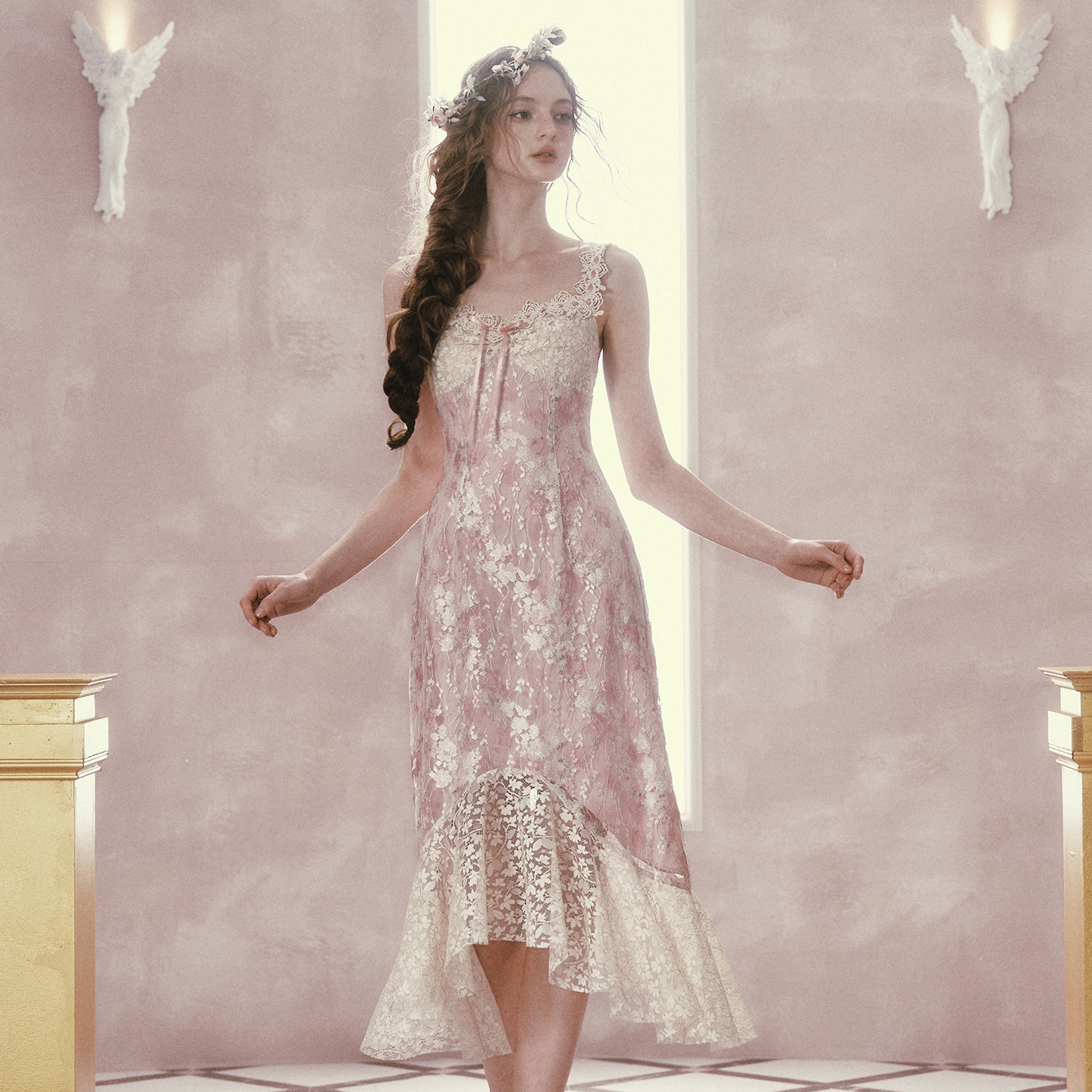 LaceMade 花蔓仙履 法式洛可可风蕾丝碎花度假连衣裙收腰鱼尾裙夏