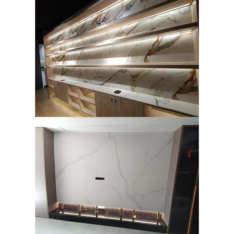 2022新款岩板电视背景墙装饰客厅现代简约轻奢风大理石影视墙安装