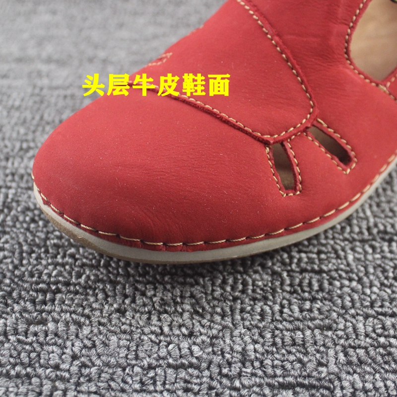 地球春夏季女士单鞋头层牛皮包头凉鞋牛筋平底大码鞋镂空透气男鞋