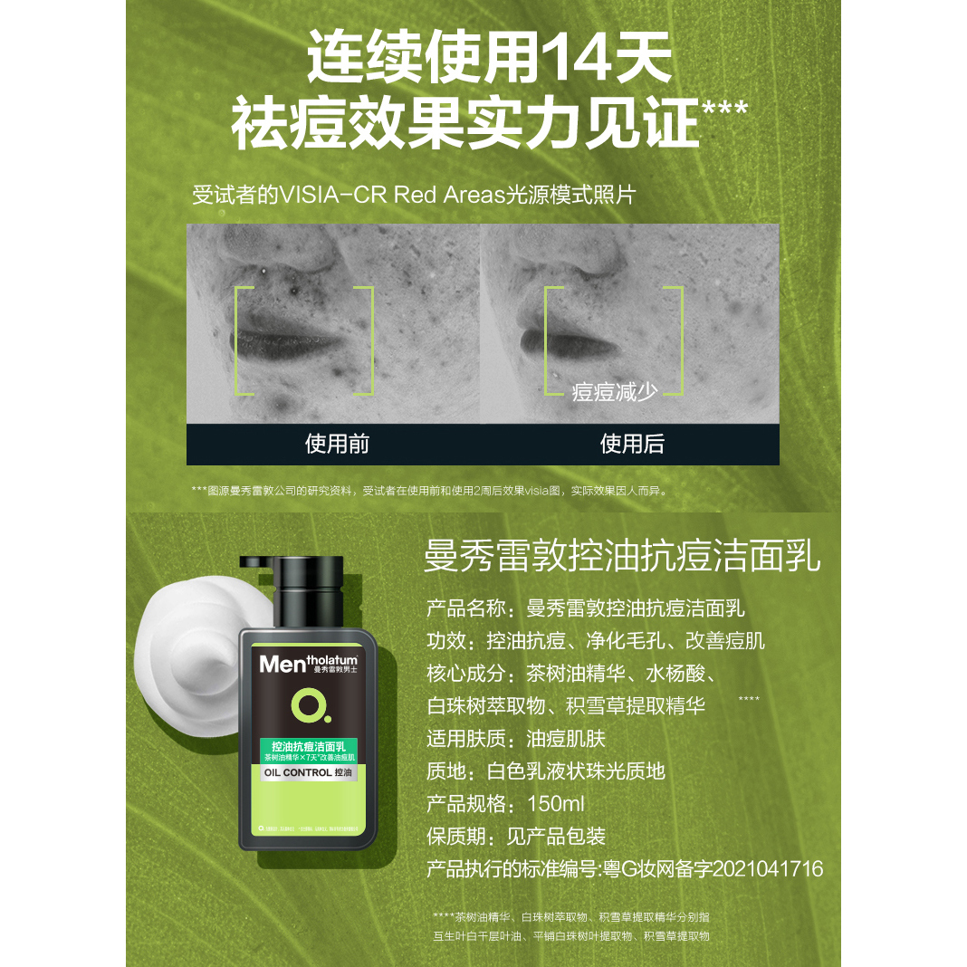 曼秀雷敦男士洗面奶清爽控油祛痘洁面乳去油去黑头旗舰店正品