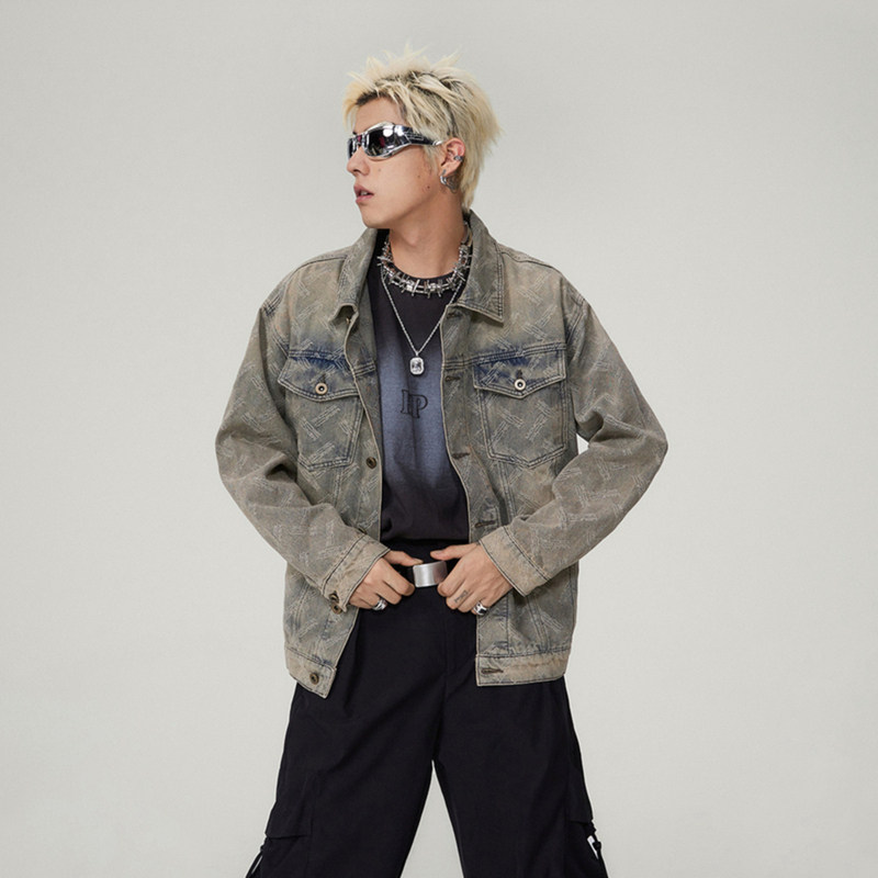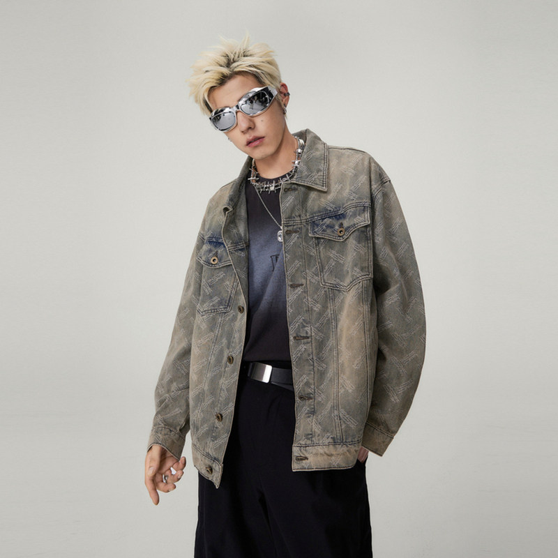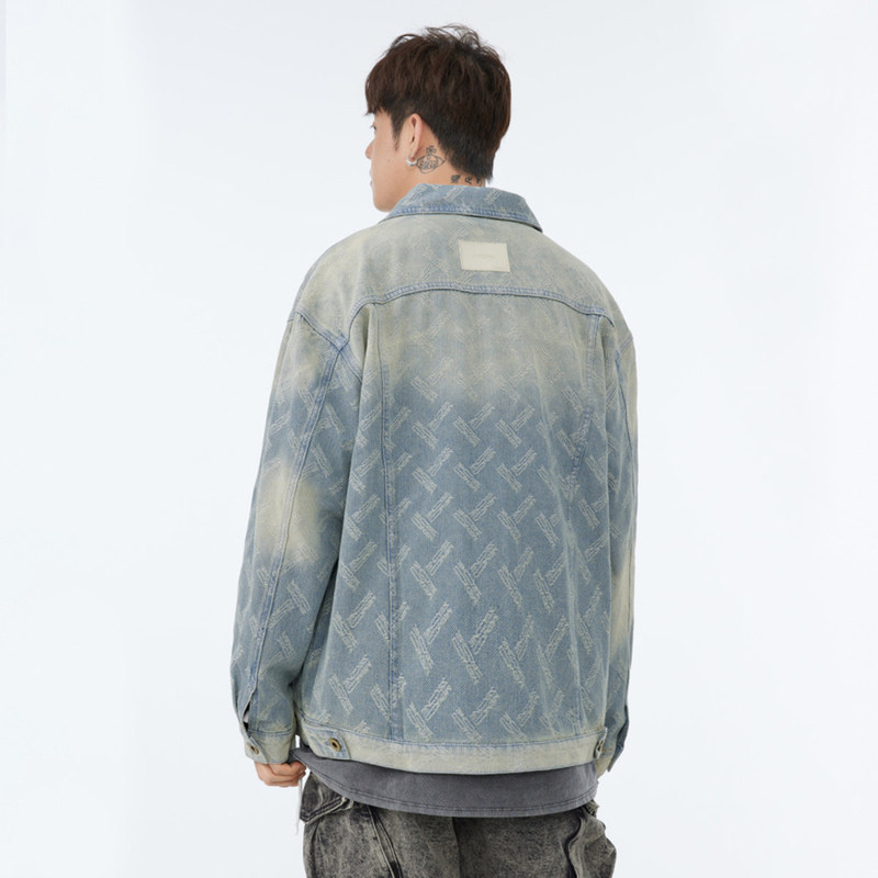 EPTISON渐变肌理感牛仔夹克潮流高街设计感廓形水洗做旧外套男女